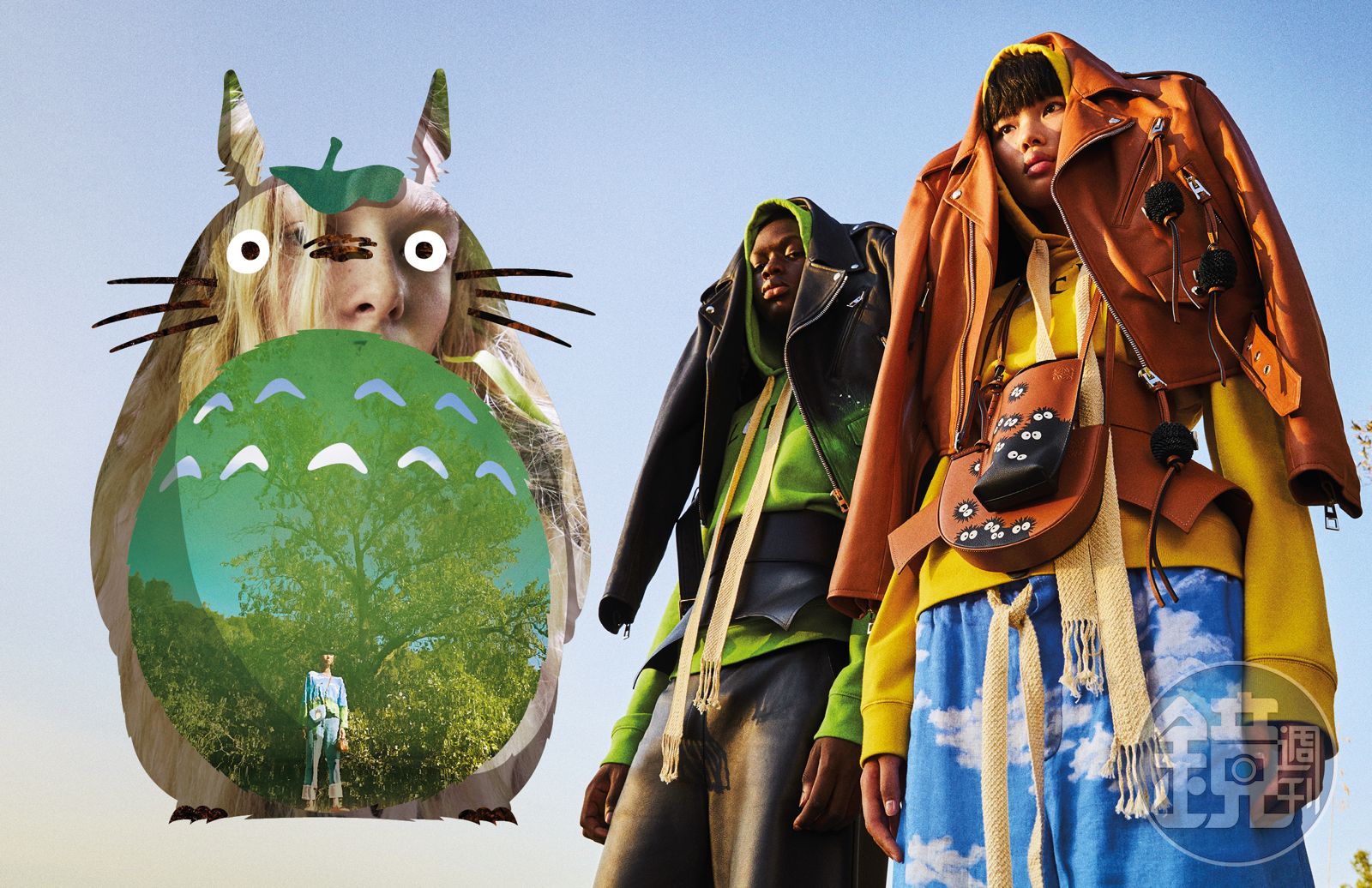 Totoro系列灰塵精靈小牛皮吊飾,NT$16,000。(LOEWE提供) 在品牌發出的拍攝影像中,模特兒在林中捉迷藏,輕鬆調皮的意態,與動畫的奇妙想像世界呼應。 LOEWE X My Neighbor Totoro《龍貓》特別系列以輕鬆休閒的設計,完整傳達夢幻想像及悠然自若的調性以及與自然和諧共存及純真童心。