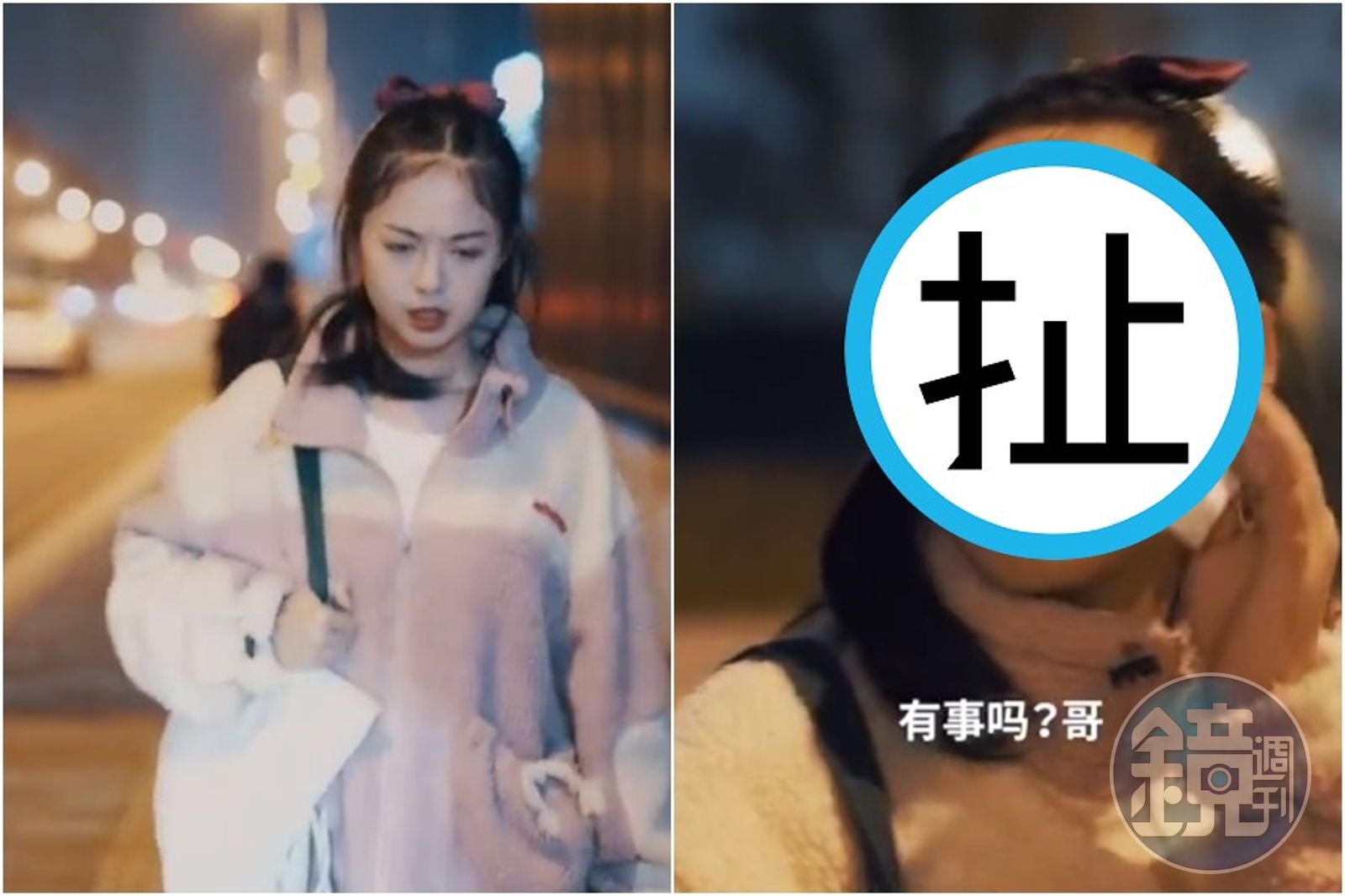 女子深夜回家時遇到一名男子尾隨跟蹤,她急中生智拿出紙巾卸妝,結果成功嚇跑跟蹤的路人。(翻攝微博)影片曝光後引來許多中國網友批評,認為不相當尊重女性,有消費女性之嫌。對此,廠商8日回應,對於影片內容帶給大家不適深表歉意,並於第一時間下架該影片,強調公司尊重並且愛護每一位女性,也致力研發更多舒適、健康、環保的女性用品。
