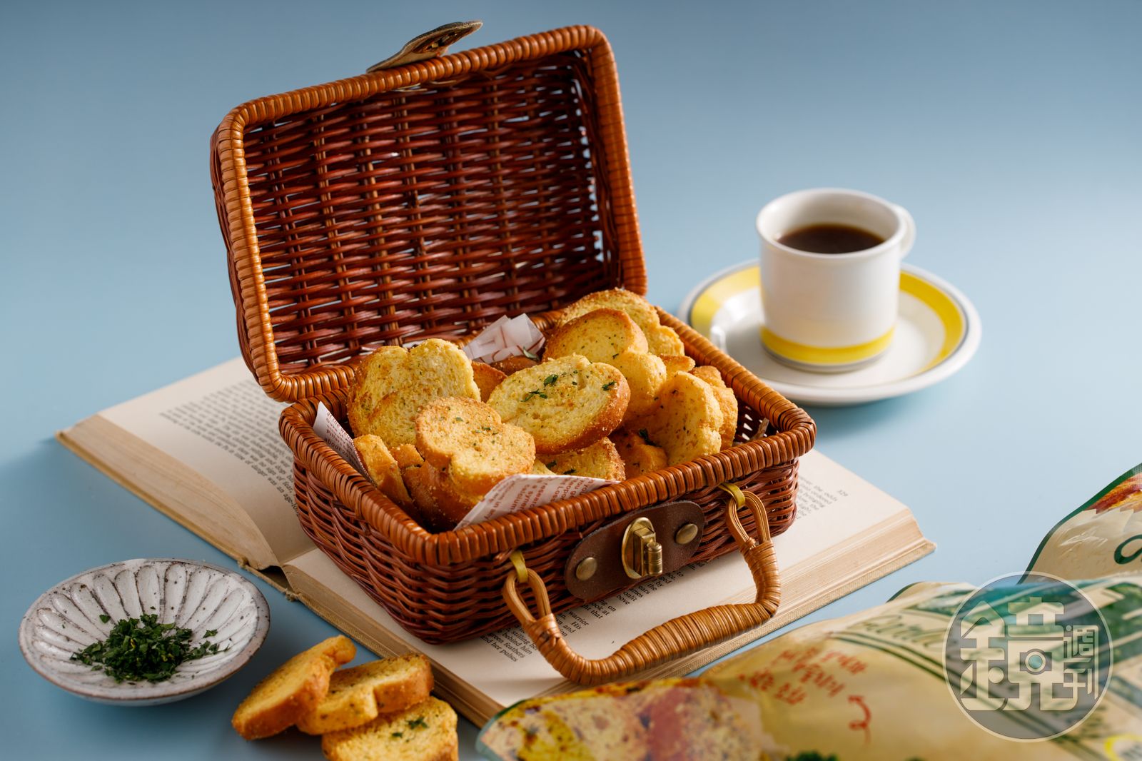 「吐司風味餅」有法式長棍麵包的氣味,還有大蒜的辛香,口感硬脆,適合蘸著濃湯吃,或是配黑咖啡。(155元/包)「廣川海苔」爽脆有鹽香,不會過於油膩,適合拿來捲飯吃。(130元/每包12入)近期最熱賣的零食就是「吐司風味餅」。吃在嘴裡的口感,就像把法式長棍麵包切成一公分的薄片,抹上薄薄的蒜泥醬,再烤到微微焦香,嘗得到麵粉和大蒜的香氣,硬脆的質地,適合蘸著濃湯一起享用。