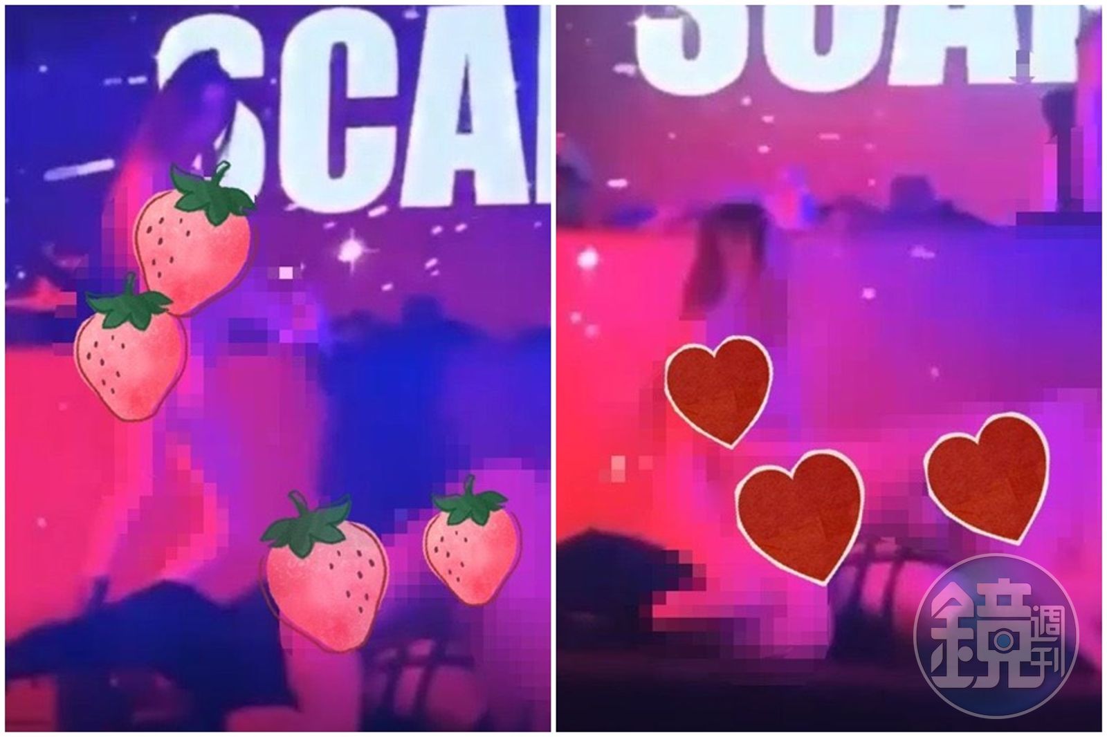 據影片內容,台上2名俄羅斯女舞者身材前凸後翹,雖三點不露但也幾乎都露,飽滿身材隨著音樂晃動,隨即男舞者上台上竟開始演類3P戲碼,互相磨蹭滿滿春色,短短16秒影片被民眾拍下,影片外流後更被大票網友瘋傳轉載。