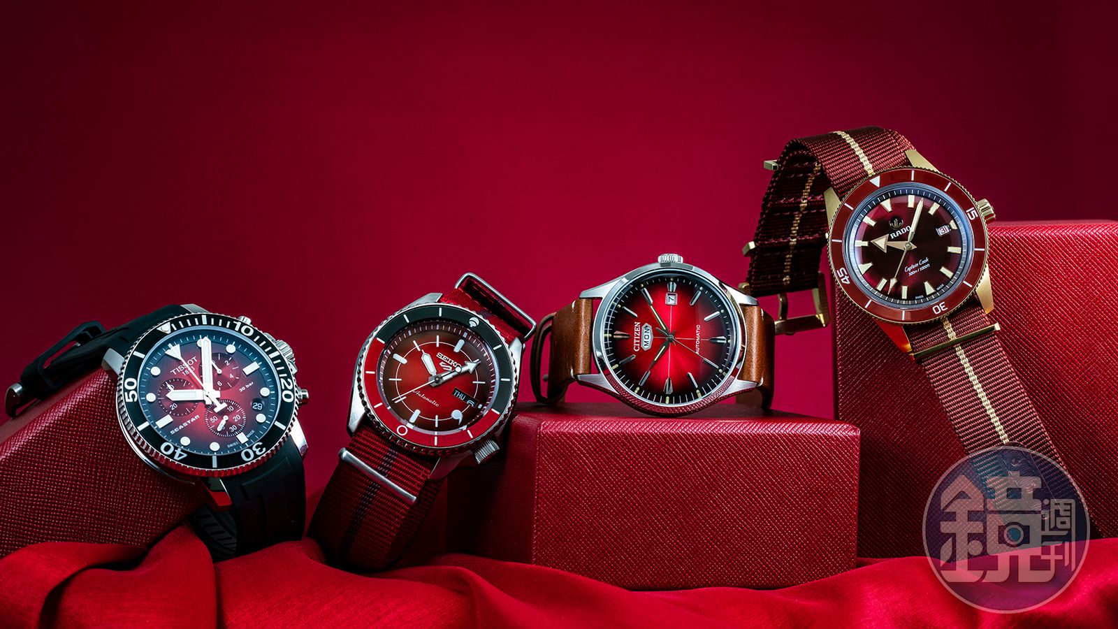 TISSOT的Seastar 1000去年有滿多款話題新作,除了加入米蘭帶的新選擇之外,石英計時碼錶也新推紅色漸層面的版本,用漸層的設計包覆住紅色的鮮豔,色彩鮮明卻不致過於張揚,是低調中又很搶眼的設計。