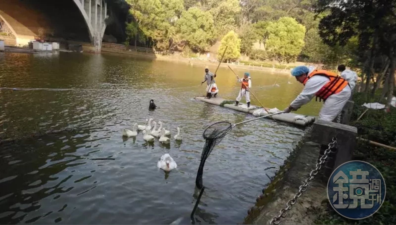 綜合報導,經防疫單位採檢後確定感染高病原性禽流感,嘉義縣家畜疾病所15日前派員前往寧靜湖管制,共統計出8隻白羅曼鵝、3隻土鵝、4隻黑天鵝、7隻綠頭鴨、7隻紅面番鴨。因開放式空間緣故,剩下「8隻」鴨鵝仍在逃亡中。前工友「天鵝爸爸」郭清標接獲消息表示相當不捨,「即便退休仍會回到校園中探望孩子,而且這些牠們都會不時游到我身邊,任由撫摸。」