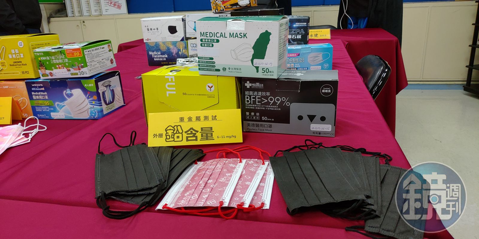 據消基會新聞稿指出,在20款市售口罩中,南六醫用口罩(未滅菌)-全黑款、美德醫用口罩(未滅菌)-嘿嘿黑及20丰荷一般醫用口罩(未滅菌)-兒童紅線聖誕紅3款樣品外層驗出鉛成分,含量為6〜11 mg/kg。而鉛可能對身體多重器官造成傷害,尤其影響發育中的兒童中樞神經最甚。
