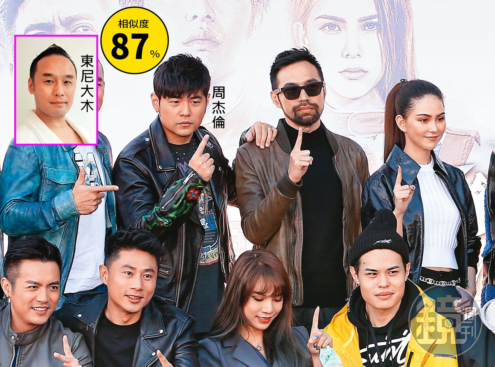 日本有位AV男優東尼大木被譽為「暗黑周杰倫」,兩男並列,想必連昆凌也認不出…好啦…應該可靠「毛長齊」的髮片認人。(喂~)但隨著東尼大木髮量愈來愈少,周杰倫(周董)最近又有點幸福肥,兩人漸行漸遠,相似度87%,不能再高了!不過周董監製的《叱咤風雲》台中首映典禮,許多網紅還是捧場搶合照,欸…還是大家只認得昆凌?