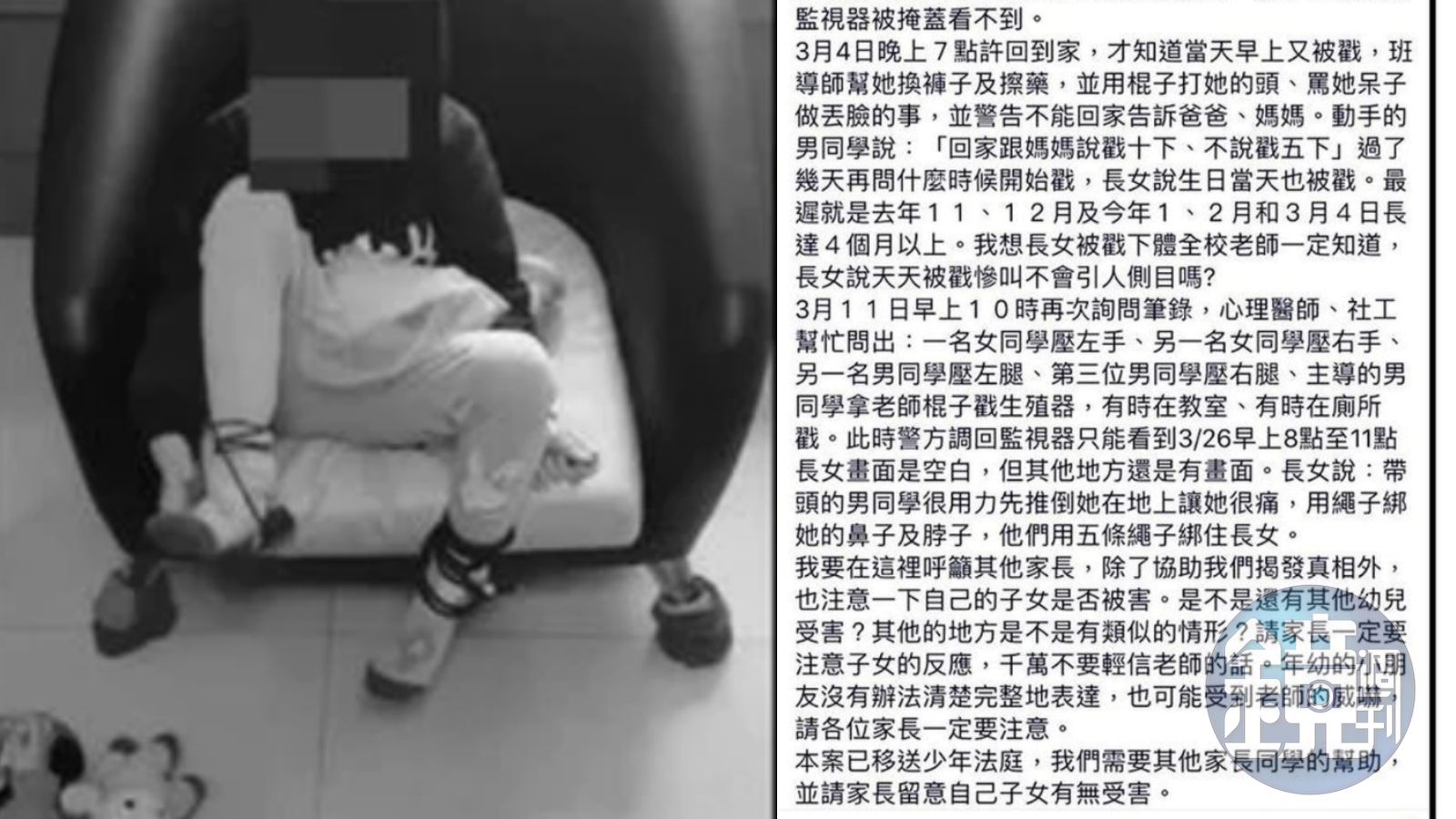 當時媒體披露,這名家長在臉書PO文指控,指幫女兒洗澡時她突然大哭,控訴被同學用棍子戳下體,還表示當下班導師曾幫她換褲子、擦藥,還用棍子打她的頭、罵她呆子等情事,並「警告」回家不准告訴父母,家長更質疑女兒遭侵犯長達4個月,隨後向檢方報案。