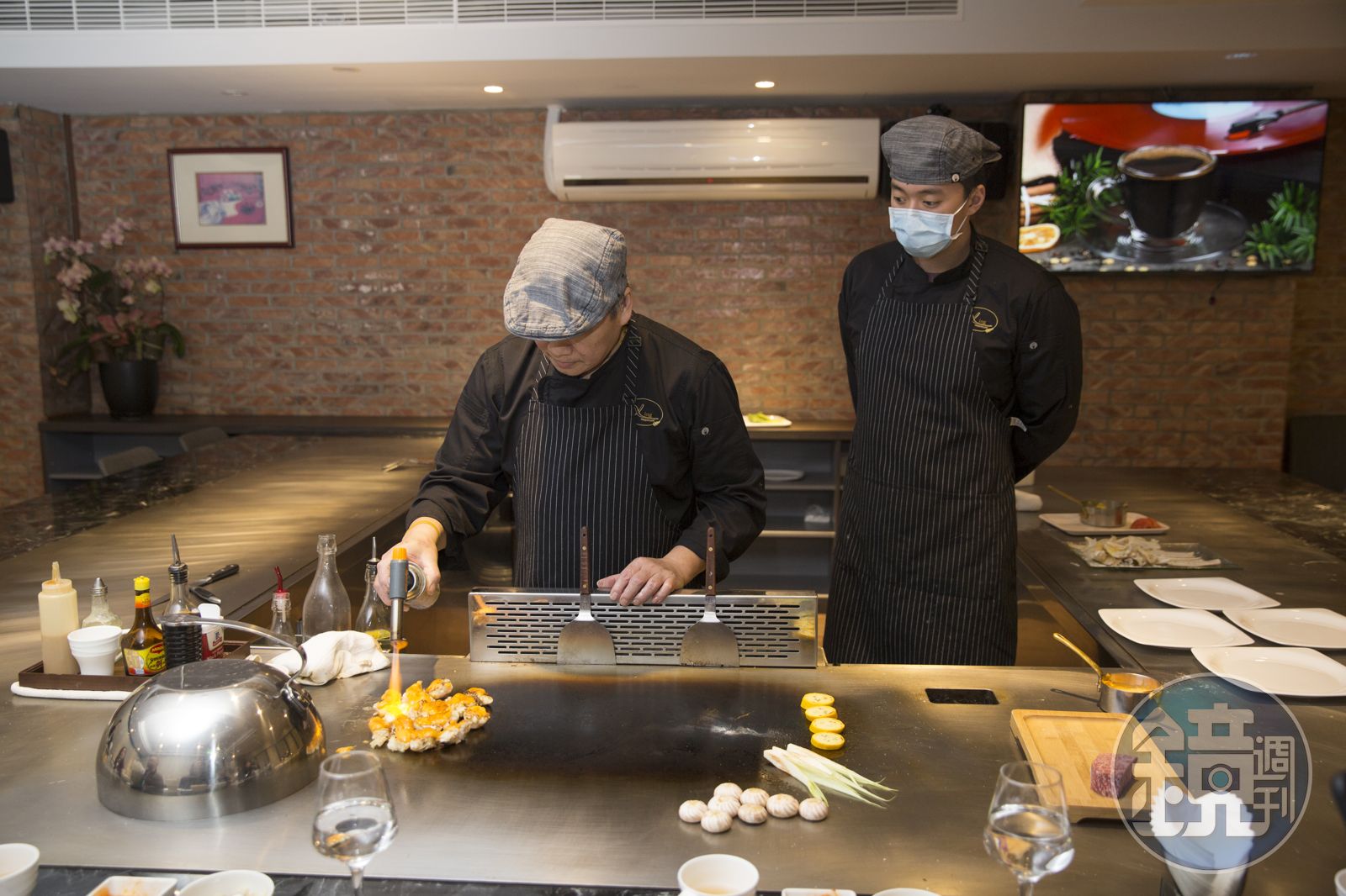 2016年,還沒找到新去處的阿興師,仍決心離開待了二十多年的老東家。一年後,他在熟客的邀約下,參與了Oui56法式鐵板燒的草創,並身兼總主廚與總經理。據知,因為有好幾個前同事也跟進,老東家對阿興師提告。「我也不懂合約,那時候忙新餐廳也沒時間管,幾個客人也跟我說告不成啦,哪知道會這樣…。」阿興師不願多提,但記者調查,阿興師後來賠了快200萬元。