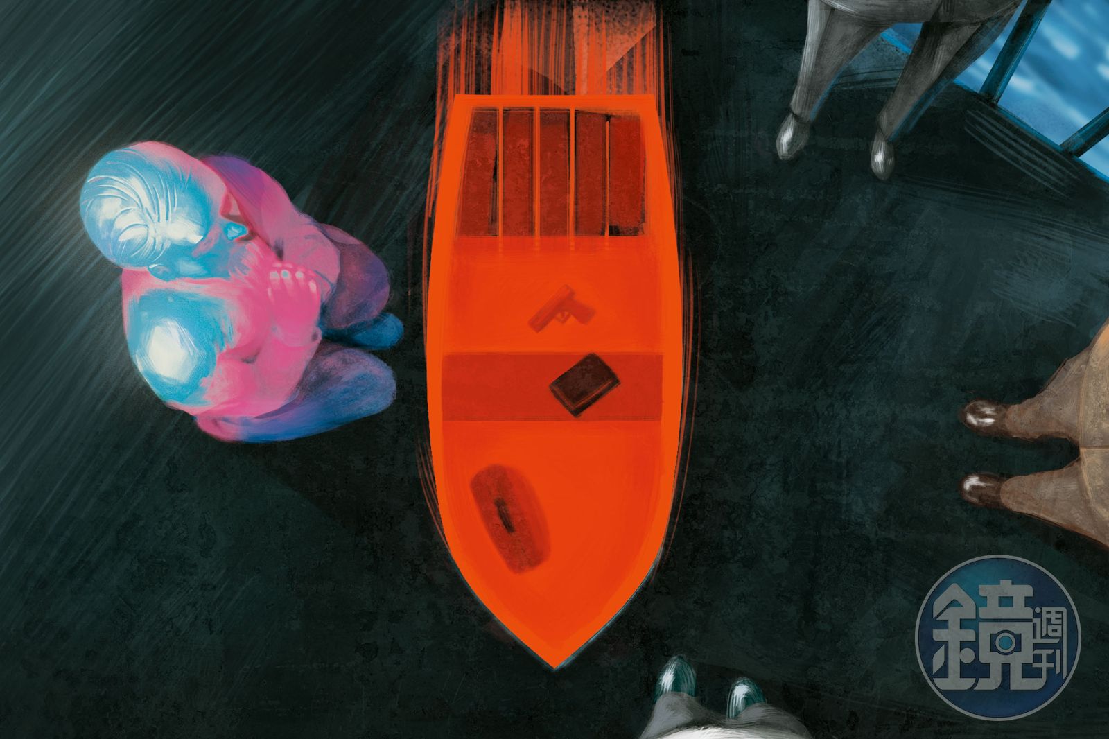 老丙坐到碼頭等天亮,他思考被子彈射中什麼部位,鮮血會順手臂流到馬偕銅像的額頭。答案很多,不過沒人問他,鑑識組的刑警忙碌地採集毛髮、鞋印、胎紋。沒找到屍體之前,法醫比不出聲的馬偕博士更沒用處。