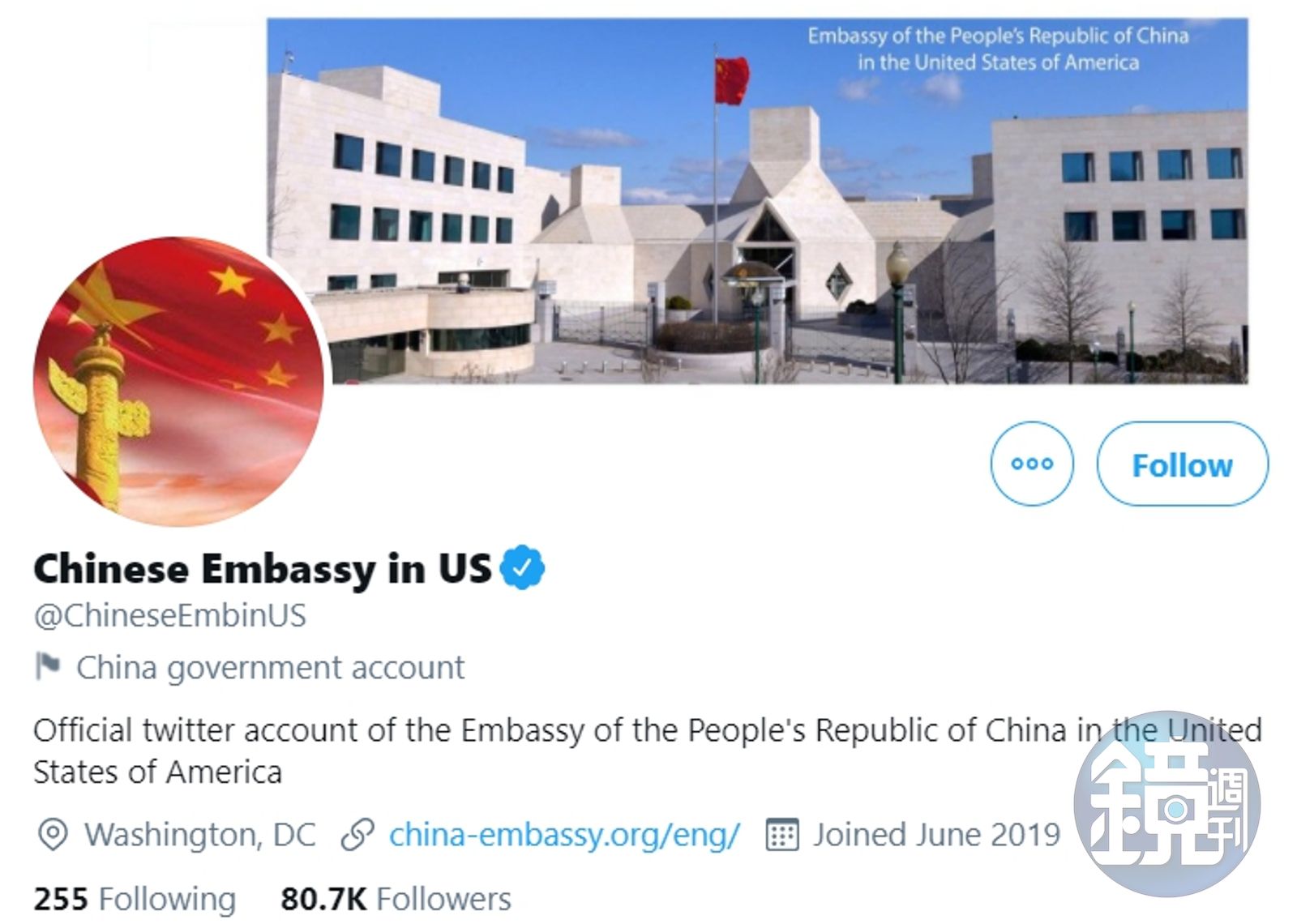 然而中國駐華盛頓使館並未立刻回覆。雖然推特在中國被全面禁用,但近來卻獲得越來越多中國外交人員或機關的愛用和青睞。