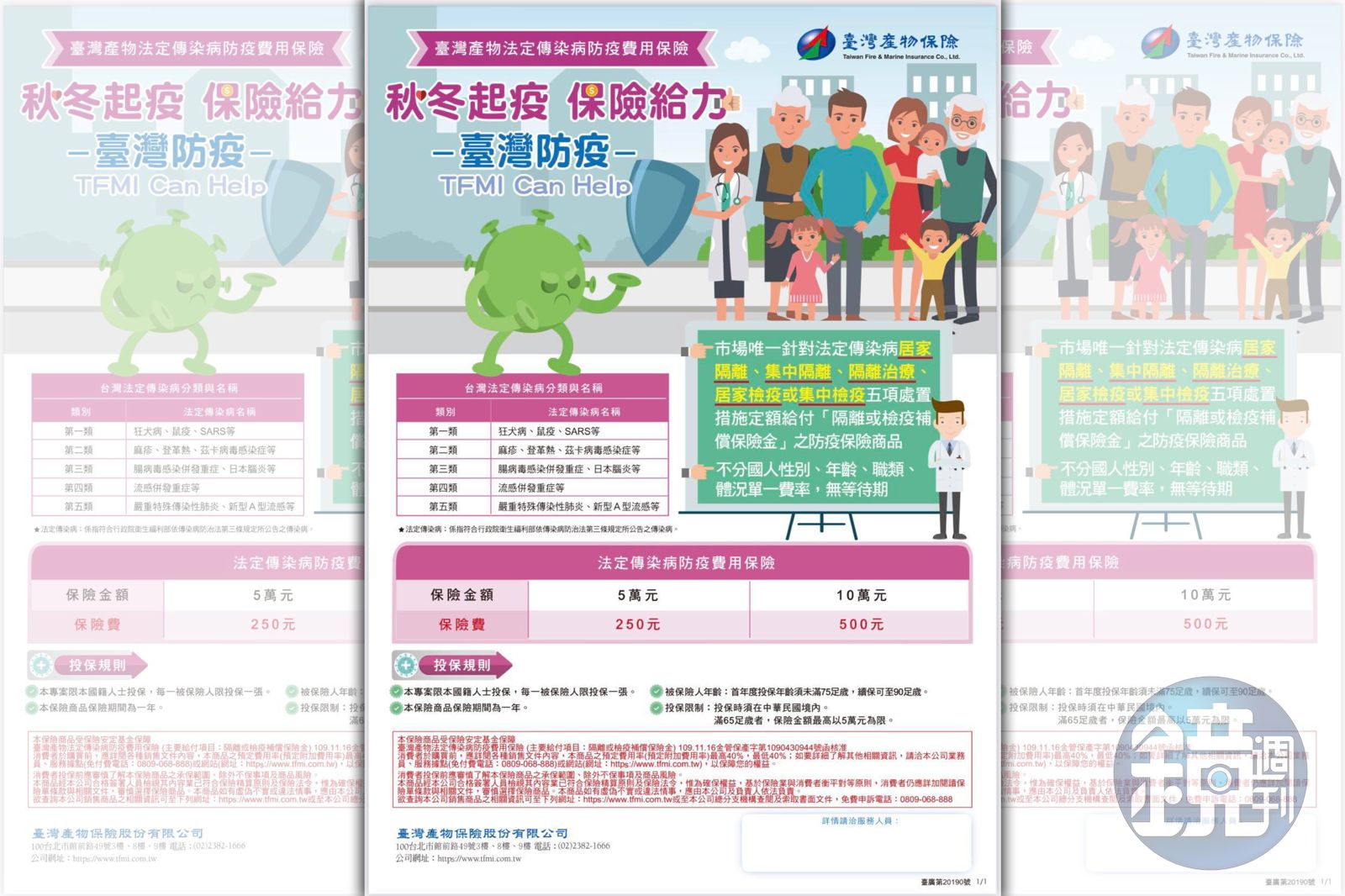 武漢肺炎(亦稱新冠肺炎,COVID-19)爆發以來,多家保險公司陸續推出防疫保單,不過台產這份「法定傳染病防疫費用保險」去年12月22日上市,是市場唯一針對法定傳染病遭居家隔離、集中隔離、隔離治療、居家檢疫或集中檢疫等5項處置措施定額給付「隔離或檢疫補償金」的防疫保險商品。
