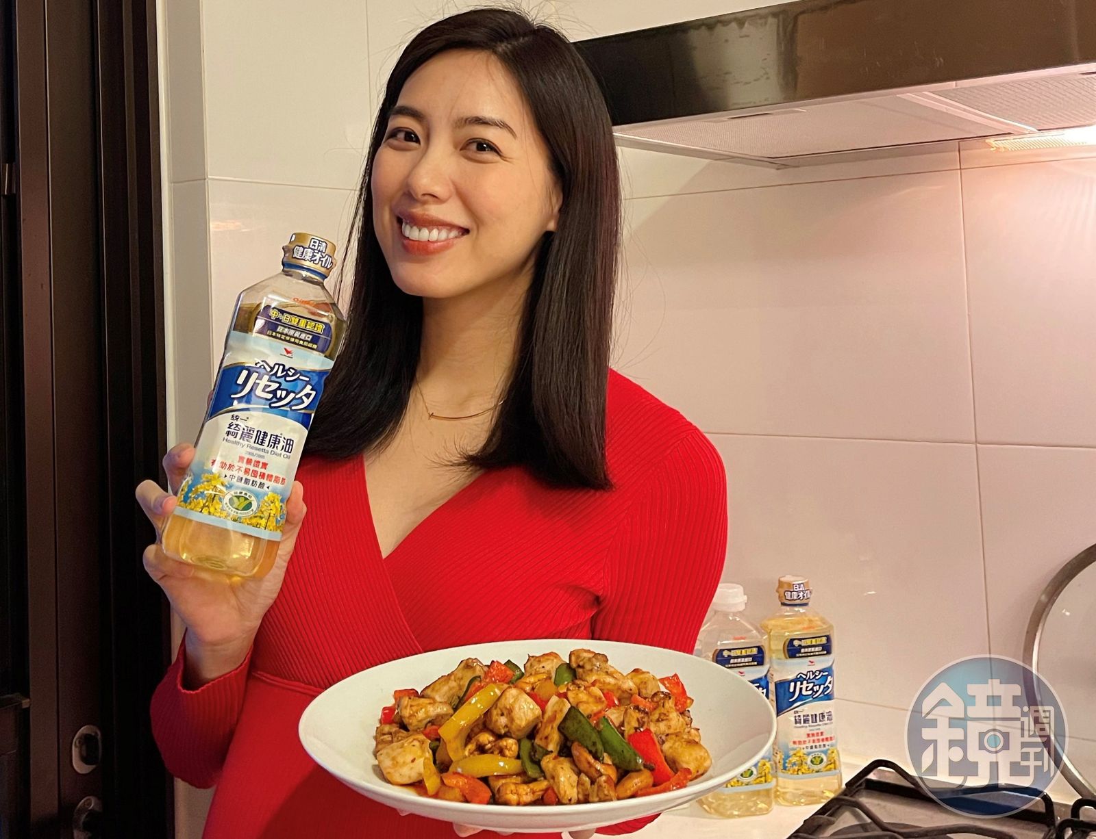 如何擄獲兒子味蕾?林可彤揭密其實是要「用適量的油」。林可彤解釋,油可提高料理美味度,過去看到有人為了管理體脂「聞油色變」,吃水煮食物,或是過水才肯吃,她認為這是錯誤觀念,料理一定要用油。尤其水煮食材,吃起來不僅淡而無味,除非有很強大的意志力,不然很難持久,她強調想變美麗,油的攝取真的太重要,就跟擦乳液是一樣的概念,才不會當「乾」媽!林可彤說,好油能兼顧美味與健康,像是綺麗健康油簡直是她的救星,不僅有不易形成體脂肪的特色,發煙點更為200度C以上,煎煮炒炸都適合,讓年節可以安心的享用美味,還能兼顧體脂管理,是她的油品首選。
