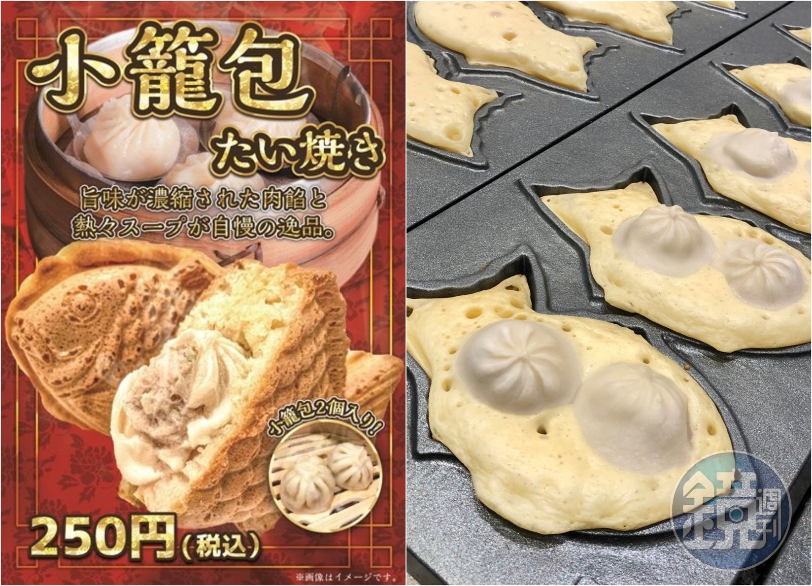 位於東京的鯛魚燒店「SEGA Taiyaki」19日宣布,他們在池袋的分店推出了全新的創意料理「小籠包鯛魚燒」,每隻鯛魚燒內都放入了2顆小籠湯包,形容它是味濃鮮美、含有溫暖熱湯,適合寒冷天氣享用的美食,售價日幣250元(約新台幣68元),並預告秋葉原分店也即將開賣。