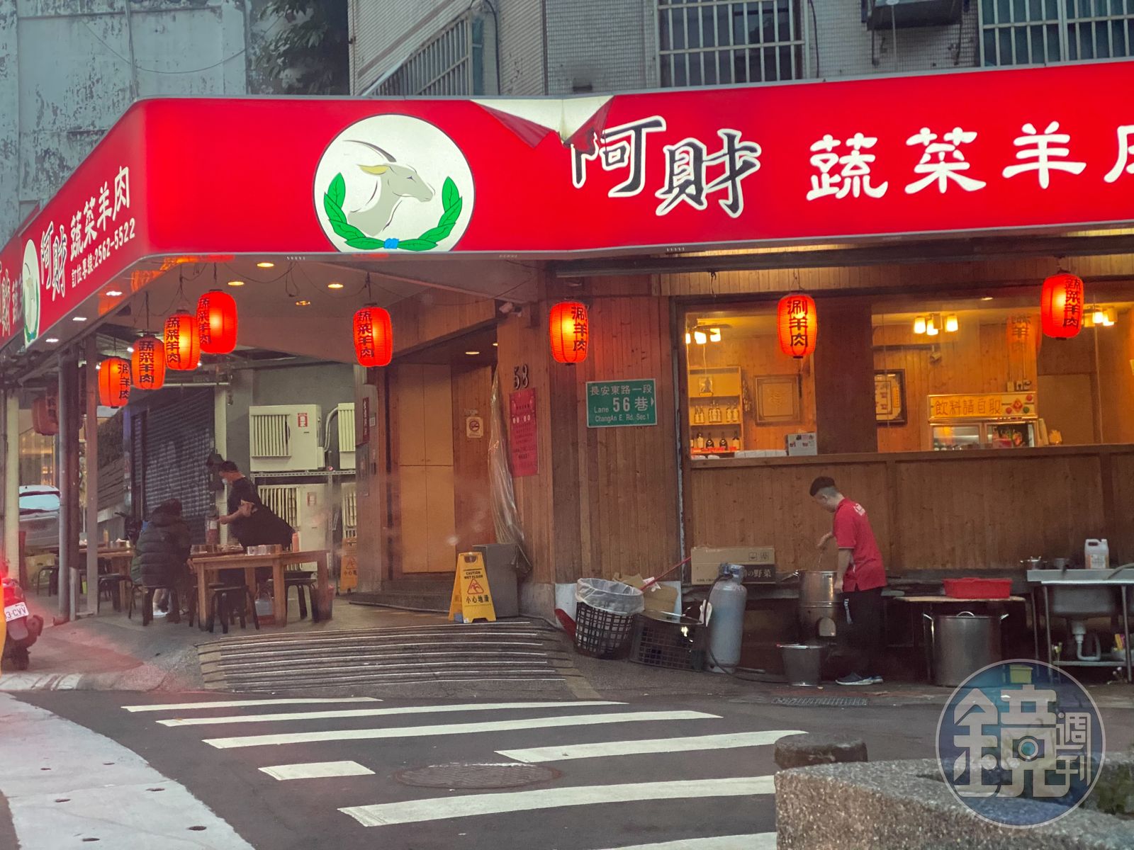 本刊去年收到爆料,檢舉人指出,阿財蔬菜羊肉店自傍晚開店起就開始占用長安東路一段56巷口營業,還在公用道路上放置大型湯鍋、流理臺、菜桶等,不僅妨礙行人用路,若不慎也恐危害安全。