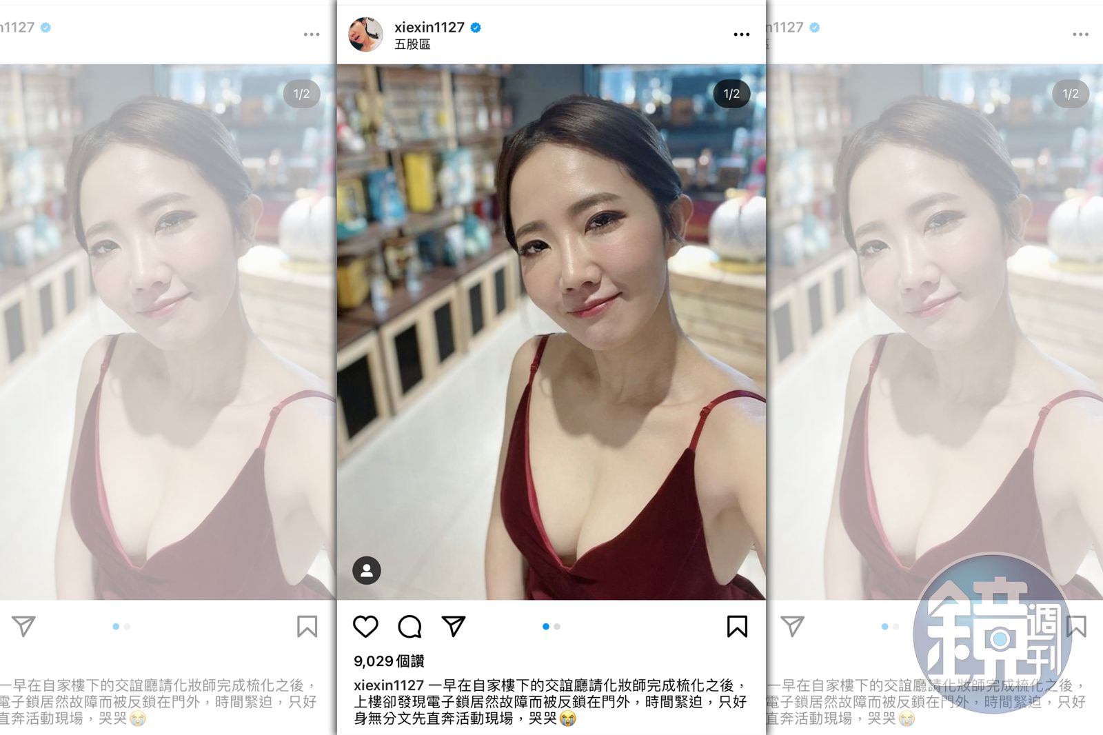 謝忻的工作漸漸步入軌道,23日他到五股主持活動,穿上一身酒紅色性感禮服,渾圓的雪乳就從禮服中迸出來,讓網友大讚,「哇!火辣辣!」「美成這樣對嗎?」但是在性感的背後,謝忻卻出了大糗,他發文表示,「一早在自家樓下的交誼廳請化妝師完成梳化之後,上樓卻發現電子鎖居然故障而被反鎖在門外,時間緊迫,只好身無分文先直奔活動現場」。 不過在他發文之後,他的IG竟然跳出電子鎖的廣告,讓他嚇了一跳表示:「這不是業配,而是手機在偷聽我!」而根據國外報導,手機和社群軟體,確實會聽使用者說話,以藉此露出廣告。