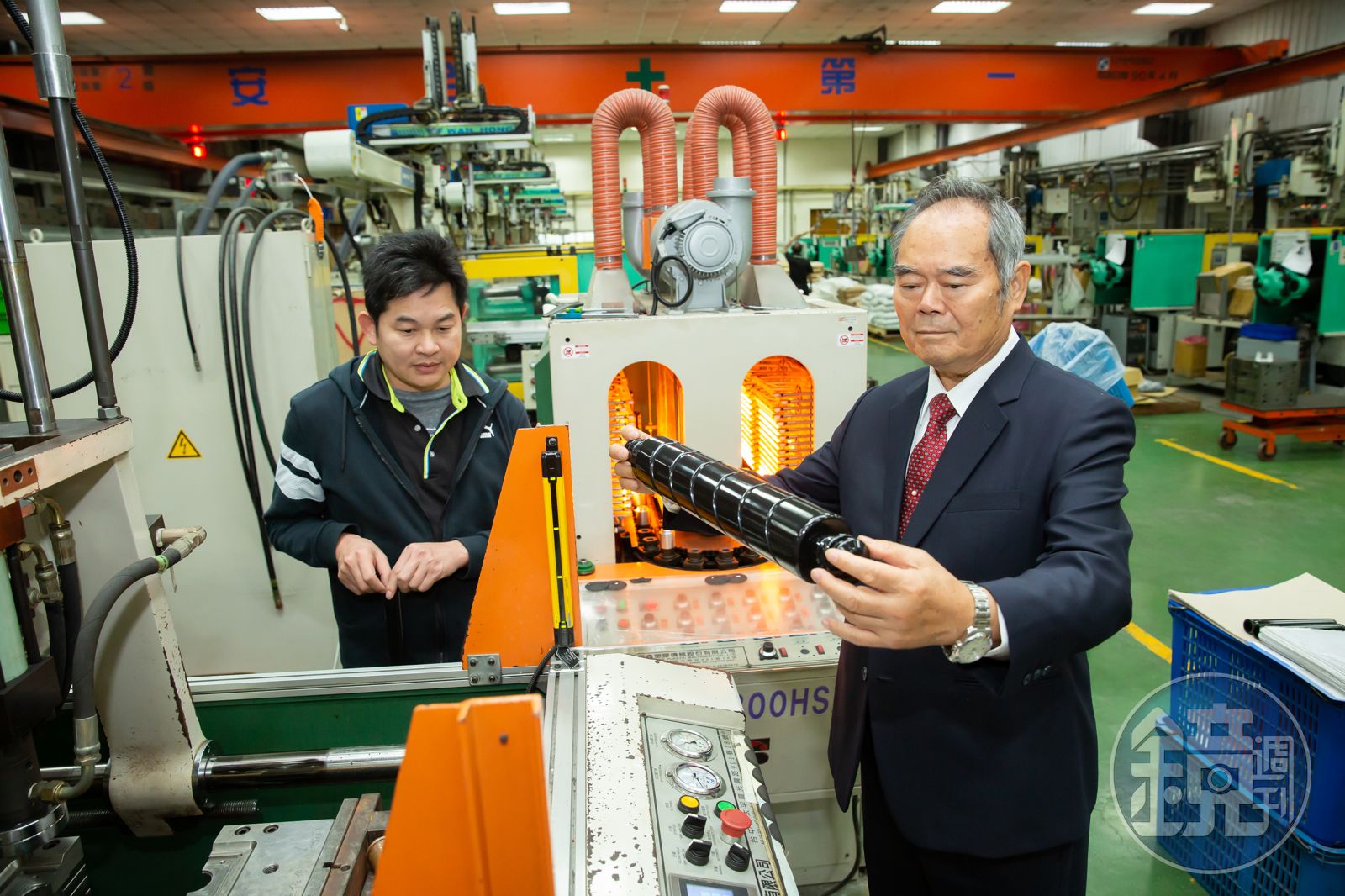 王瑞宏退伍後跟著叔叔學做生意,「我個性比較剽悍,叔叔派我去監工,從鞋廠廠長做起。」空閒時他又到大哥經營的建設公司幫忙,32歲創立上福,主要生產製鞋所需的塑膠射出模具。