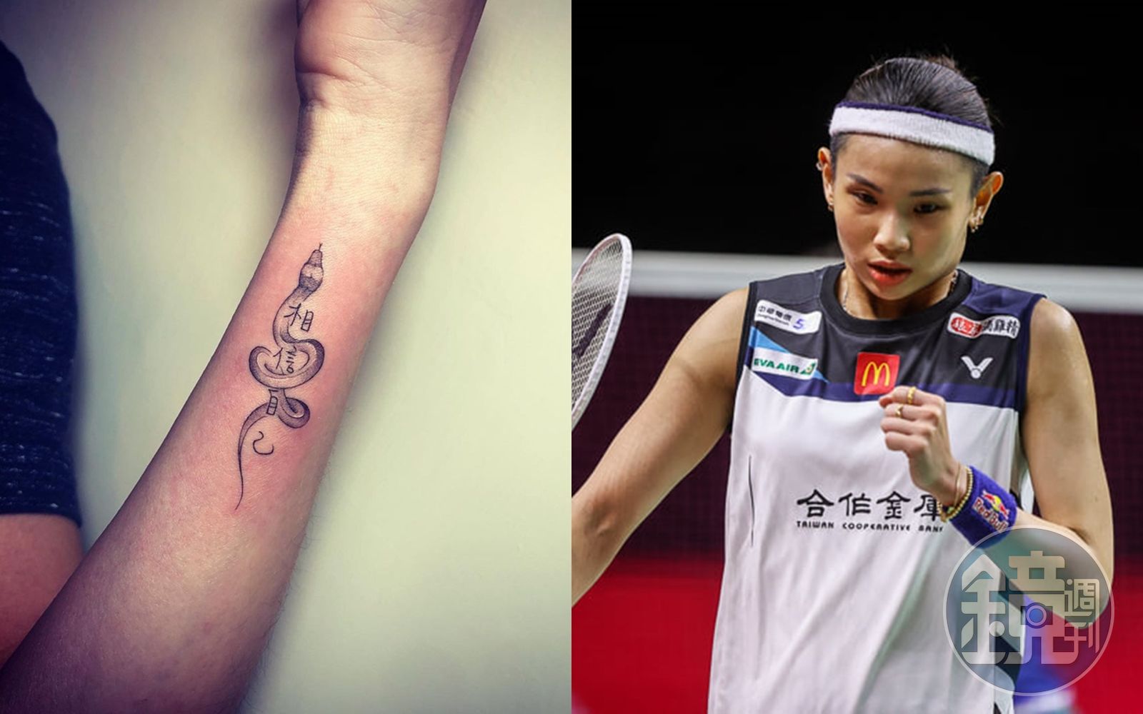 戴資穎隨後在IG貼出一張手上的刺青照,圖案是一隻蛇及手寫字「相信自己」,戴資穎說,她的父親一直都不喜歡刺青,因此她身上前2個刺青都是在未經父親同意下就刺上的;某段時間她的情緒不佳,「在洗澡水中參雜著淚水一起落掉...(那時候給自己的壓力很大)。忘記哭過幾次(沒錯,我也會哭)」,當時她一直想著父親從小到大對她說的「無論如何都要相信自己」這句話,便想將父親手寫的「相信自己」4字刺在手上。