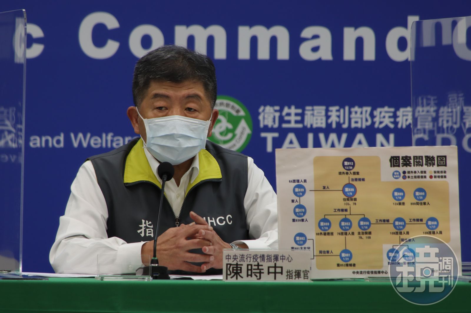 針對護理之家訪客是否需要匡列?陳時中回應,這些人由於相處時間沒有那麼長,應進行自主健康管理,避免去人多的地方,做好戴口罩、勤洗手的防疫工作,若有任何狀就通報1922,由醫師進行判斷。媒體追問是否會進行二採?陳時中回應,目前沒有二採情形;傳染病防治諮詢會預防接種組(ACIP)召集人李秉穎則指出,若無大規模環境傳染是不需要第二次採檢。