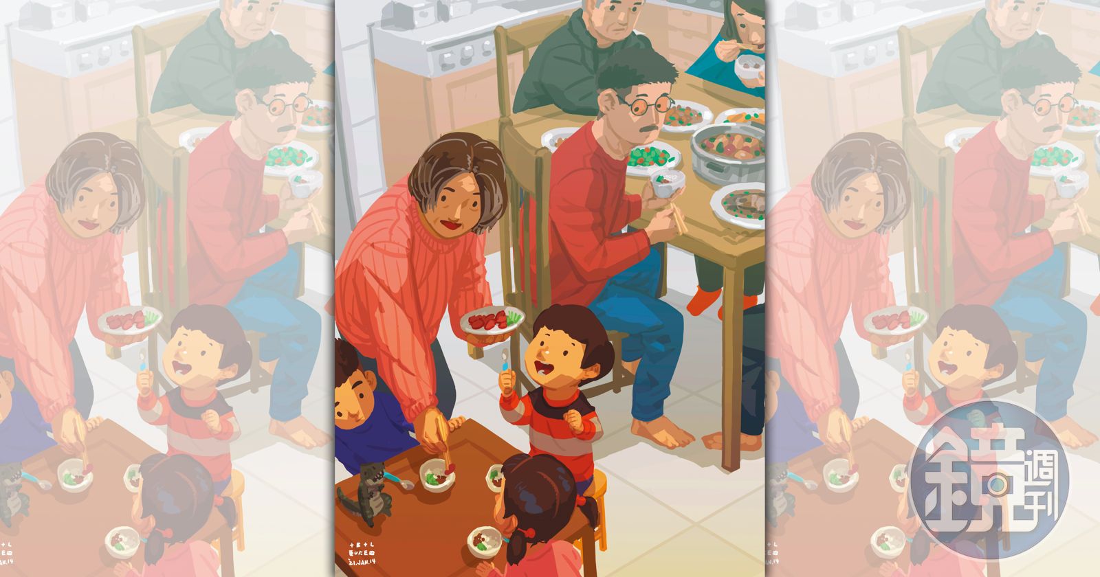 2021.02.09 05:58 臺北時間【單親爸爸週記】小朋友的視角文化發布時間:2021.02.09 05:58 臺北時間更新時間:2023.09.12 20:37 臺北時間圖文︱藍聖傑 編輯︱翟翱已複製連結贊助本文加入訂閱會員新年快樂過年單親爸爸週記藍聖傑過年小孩總獨坐一桌。 無意間聽見兒子說:「我爸爸他⋯⋯」 倒像是小大人在品頭論足我們這桌了。 小時候過年,坐旁邊的我總想著,大人那桌在聊什麼起勁的話題? 自己成為大人才知道,其實想的、聊的都是另一桌的小孩們。 就這樣,兩桌的人在炮竹聲碗筷聲中想著另一桌的人們。 偌大的飯廳忽然溫暖了起來。 藍聖傑插畫、動漫藝術家,以單幅插畫繪本呈現單親奶爸帶兒子的生活甘苦點滴,引發強烈共鳴,臉書上全球逾百萬人次分享。更新時間|2023.09.12 20:37 臺北時間延伸閱讀【單親爸爸週記】童年的滋味【單親爸爸週記】看世界的方式【單親爸爸週記】食物的味道【單親爸爸週記】家變成了畫室【單親爸爸週記】我比兒子還緊張【單親爸爸週記】給他多點時間支持鏡週刊小心意大意義小額贊助鏡週刊!贊助本文每期 $35 元動態話題報導無限閱讀解鎖新鮮事加入訂閱會員鏡週刊加入追蹤訂閱下載鏡週刊加入追蹤訂閱下載更多內容,歡迎 鏡週刊紙本雜誌、鏡週刊數位訂閱、了解內容授權資訊。獨家深度分析報導線上閱讀
