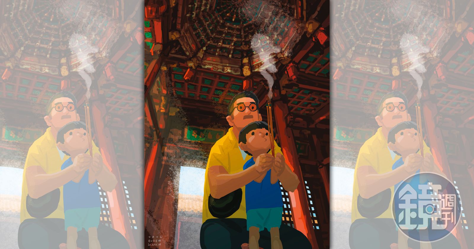 2021.02.16 05:58 臺北時間【單親爸爸週記】拜神文化圖文︱藍聖傑 編輯︱翟翱發布時間:2021.02.16 05:58 臺北時間更新時間:2023.09.12 20:37 臺北時間已複製連結贊助本文加入訂閱會員祭拜單親爸爸週記藍聖傑廟宇藻井繁複壯麗,底下人們各懷所思。帶兒子拜拜,我行禮如儀,他事不關己。一面拜神,一面擔心他拿香危險。拜了半天,內心最多的祈禱是,拜託兒子不要燙到人。沒有羞恥心的年紀,才能公然挖鼻孔,而且挖得怡然自得。兒子便是在這樣的年紀。我遞上面紙,小聲跟他說要偷偷挖。他則大聲反問為什麼要偷偷?我一時語塞。兒子繼續扮演窗邊獨特的風景。藍聖傑插畫、動漫藝術家,以單幅插畫繪本呈現單親奶爸帶兒子的生活甘苦點滴,引發強烈共鳴,臉書上全球逾百萬人次分享。更新時間|2023.09.12 20:37 臺北時間延伸閱讀【單親爸爸週記】小朋友的視角【單親爸爸週記】童年的滋味【單親爸爸週記】看世界的方式【單親爸爸週記】食物的味道【單親爸爸週記】家變成了畫室【單親爸爸週記】我比兒子還緊張支持鏡週刊小心意大意義小額贊助鏡週刊!贊助本文每期 $35 元動態話題報導無限閱讀解鎖新鮮事加入訂閱會員鏡週刊加入追蹤訂閱下載鏡週刊加入追蹤訂閱下載更多內容,歡迎 鏡週刊紙本雜誌、鏡週刊數位訂閱、了解內容授權資訊。獨家深度分析報導線上閱讀