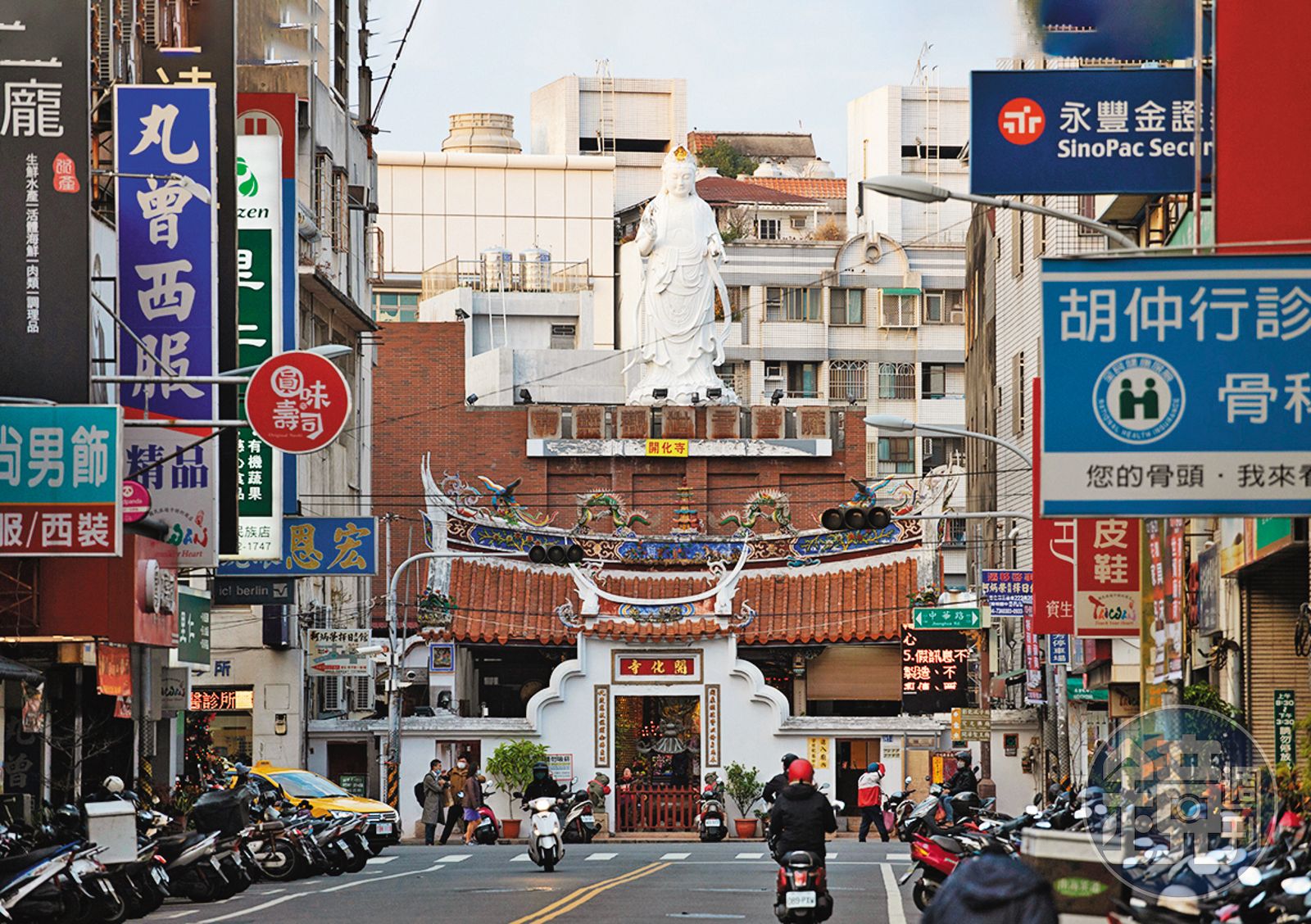 在熱鬧的彰化市民族路上,遠遠就能望見一尊數公尺高、潔白的觀世音神像,純金打造的白毫,在夕陽斜暉照耀下閃閃發亮。「開化寺」建於1724年(清雍正2年),是彰化設縣後第一座寺廟,因此也被稱為「開彰第一寺廟」。建築物座落在兩棟民宅中間,看起來十分顯眼,而這裡正是當年彰化縣城最繁榮的一區。