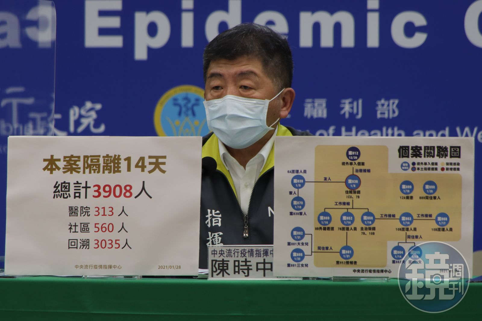針對院內群聚感染,指揮中心目前已匡列3,908人進行14天居家隔離,包含醫院313人、社區560人及回溯3,035人,陳時中補充,醫院隔離人數不包含已解除隔離者,目前已有229人解隔離出院;陳時中表示,會再增加一個貨櫃屋地點增加採減量能,昨日已採檢174人。