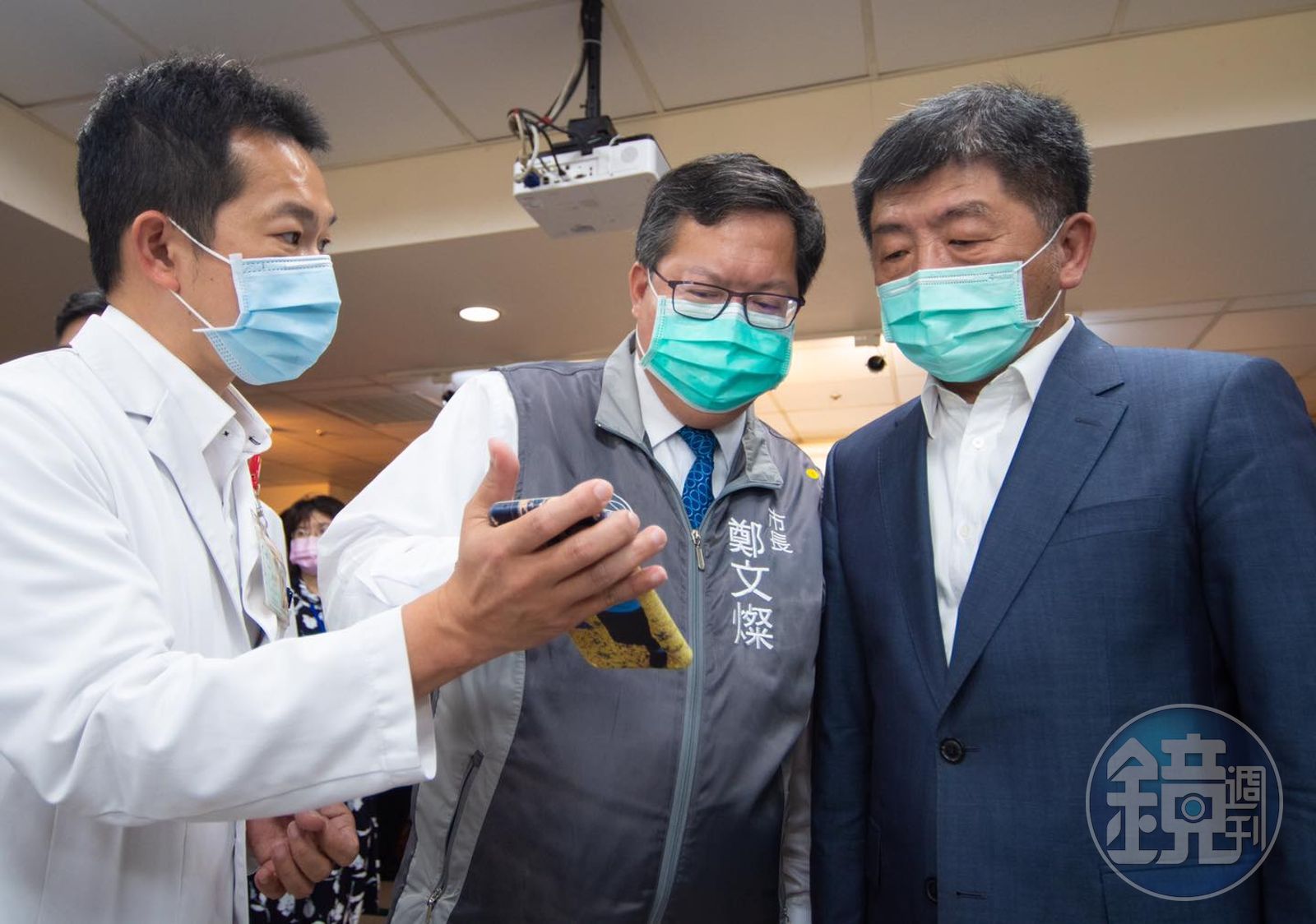 桃園市長鄭文燦(中)今在臉書上發文,力挺疫情指揮官陳時中(右)和各個醫護人員。(翻攝自鄭文燦臉書)發布時間:2021.01.28 12:00 臺北時間