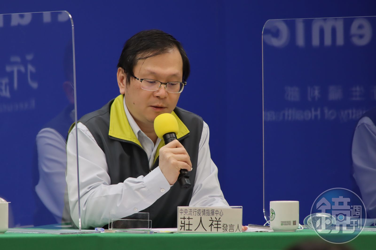 莊人祥今日於臨時記者會被問及有檢疫官被推倒一事,表示據了解是「那個要推的人自己跌倒」,目前航警已做筆錄,預計會依妨害公務作起訴。指揮官陳時中強調,檢疫是公務行為,於《傳染病防治法》中有明確規範,不配合檢疫就會有相關處分,對檢疫人員產生無論是言語威脅或人身傷害,是絕對不會被允許的。