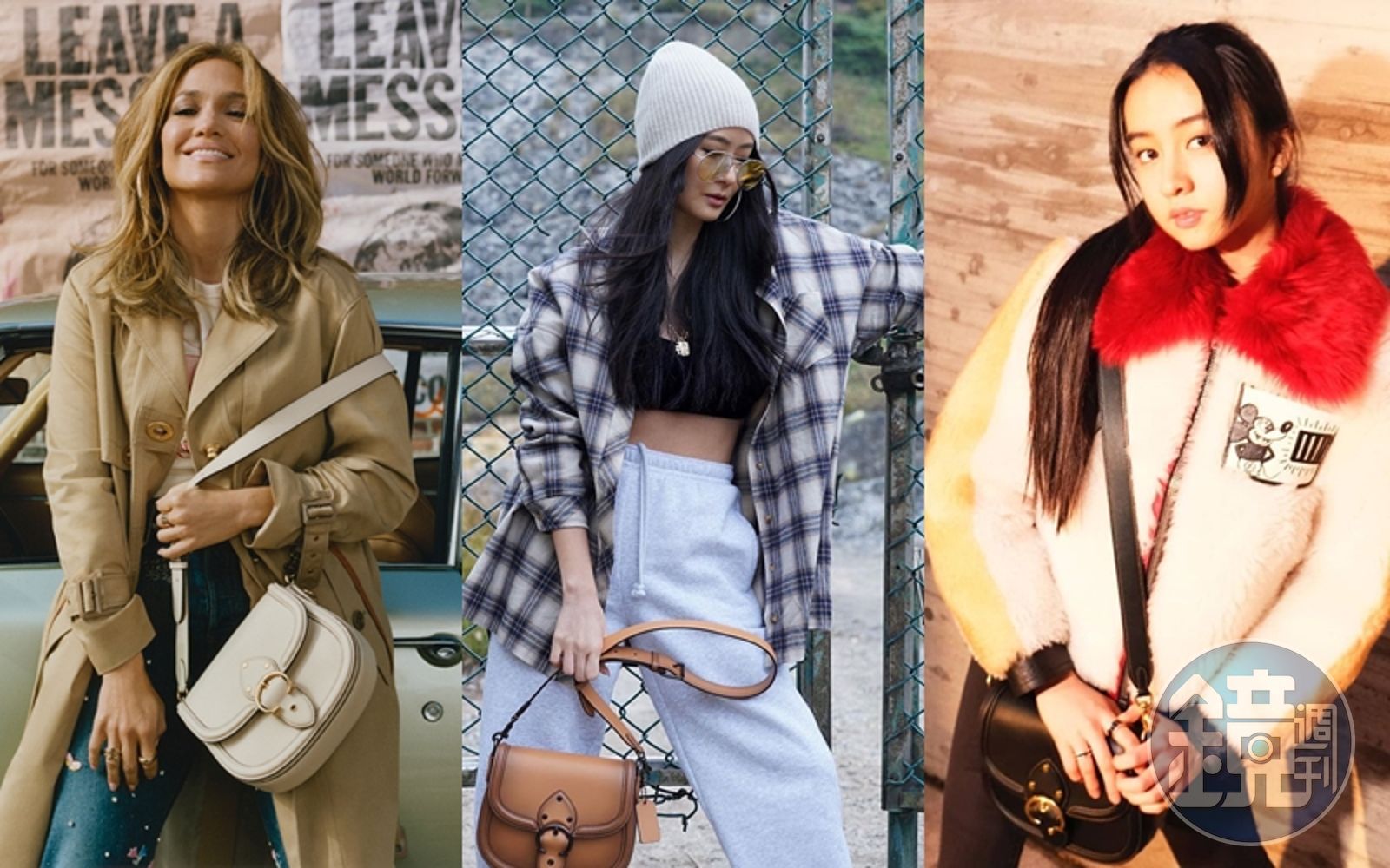 (左起)珍妮佛羅培茲(Jennifer Lopez)、孫芸芸、Koki以不同方式演繹Beat Saddle手袋,但以孫芸芸最為吸睛出眾。(COACH提供)發布時間:2021.02.01 16:34 臺北時間
