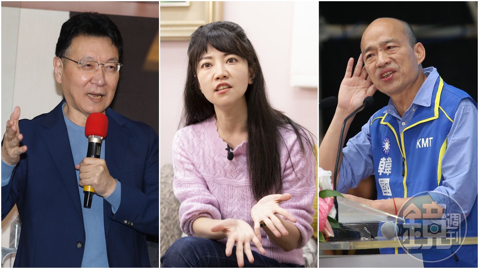 對於趙少康(左)與韓國瑜(右)可能的強強聯手,高嘉瑜(中)喊話「失聯黨員」民進黨大老沈富雄。(本刊資料照)發布時間:2021.02.04 11:33 臺北時間