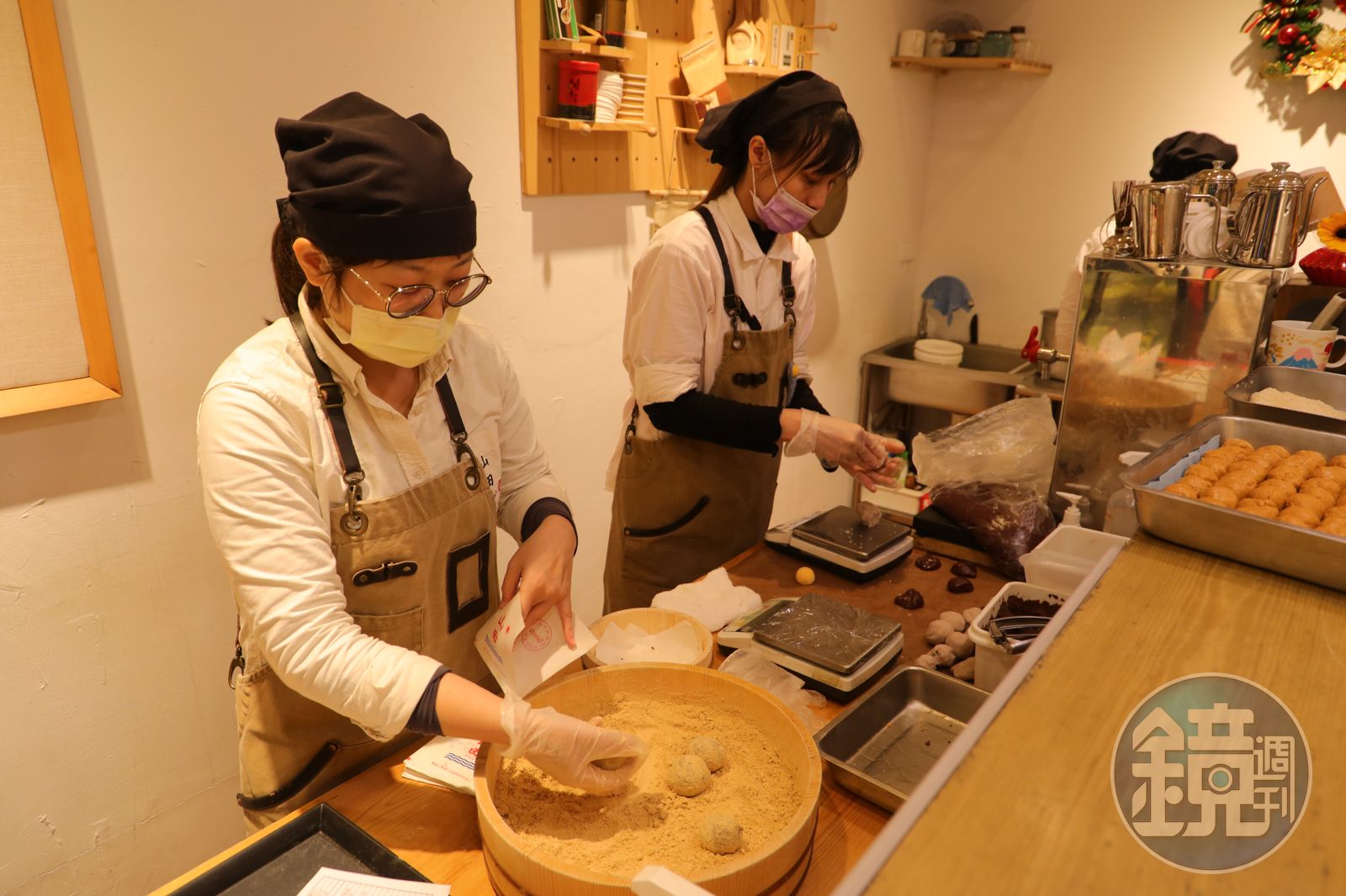 若不愛包餡麻糬,赤糖小麻糬也是必點招牌之一,小顆麻糬裝在小盒子中,撒上黃豆粉,口感軟Q不會太甜,讓人一口接一口,另外,還會附上一罐迷你黑糖漿,讓喜歡吃甜的人可以自行「加碼」。除了麻糬,店內還有販售牡丹餅,牡丹餅又稱紅豆萩餅,是日本傳統點心之一。