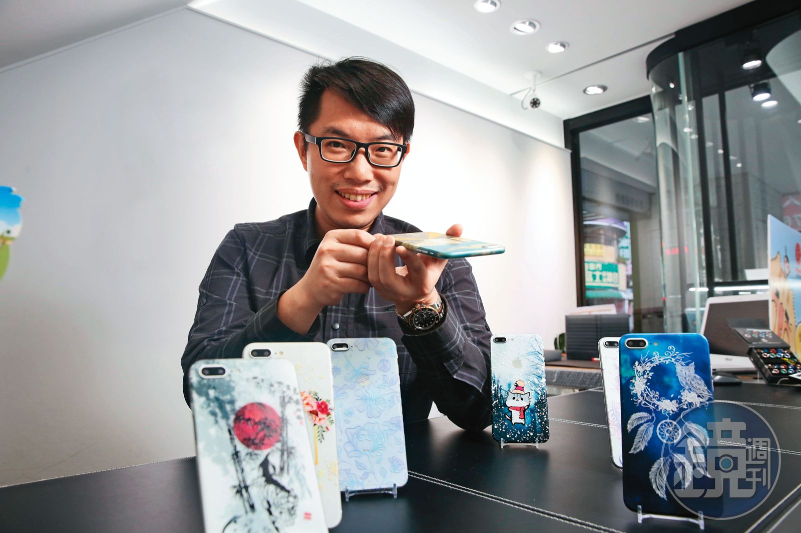 光是領薪水還無法滿足陳威領,2011年,逛光華商場看到有手機鍍膜廠商在徵加盟,那時iPhone 4正當紅,一支手機2萬多元,最怕摔傷刮壞,帶動鍍膜保護貼、手機殼商機崛起,他拿出僅有的15萬元積蓄,加入開店行列。
