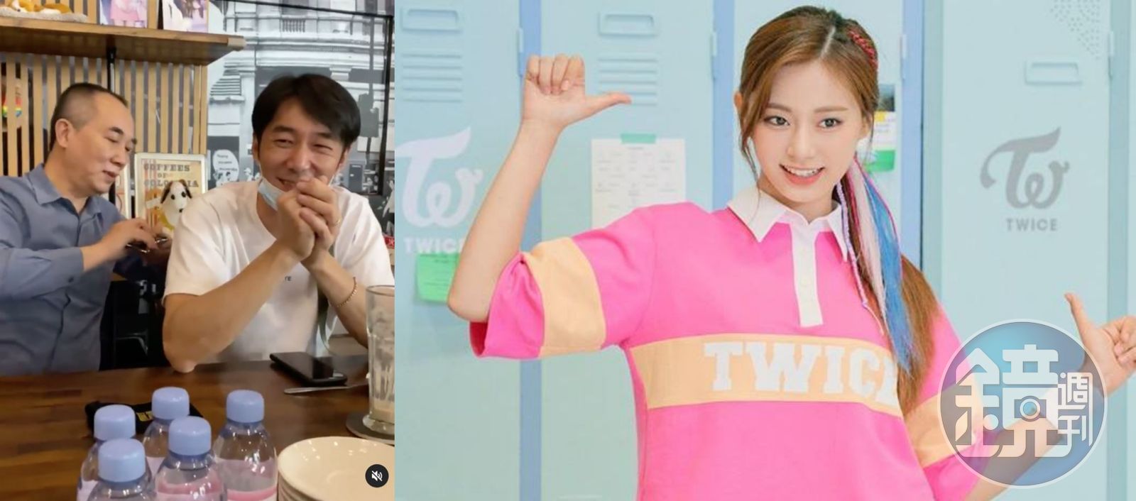 21歲的周子瑜(右圖)享有高人氣,讓家人很以她為榮。幫李李仁(左圖右)刮背的男子,正是周爸(左圖左)。(右圖翻攝TWICE官方臉書、左圖翻攝自陶晶瑩IG)發布時間:2021.02.08 12:07 臺北時間