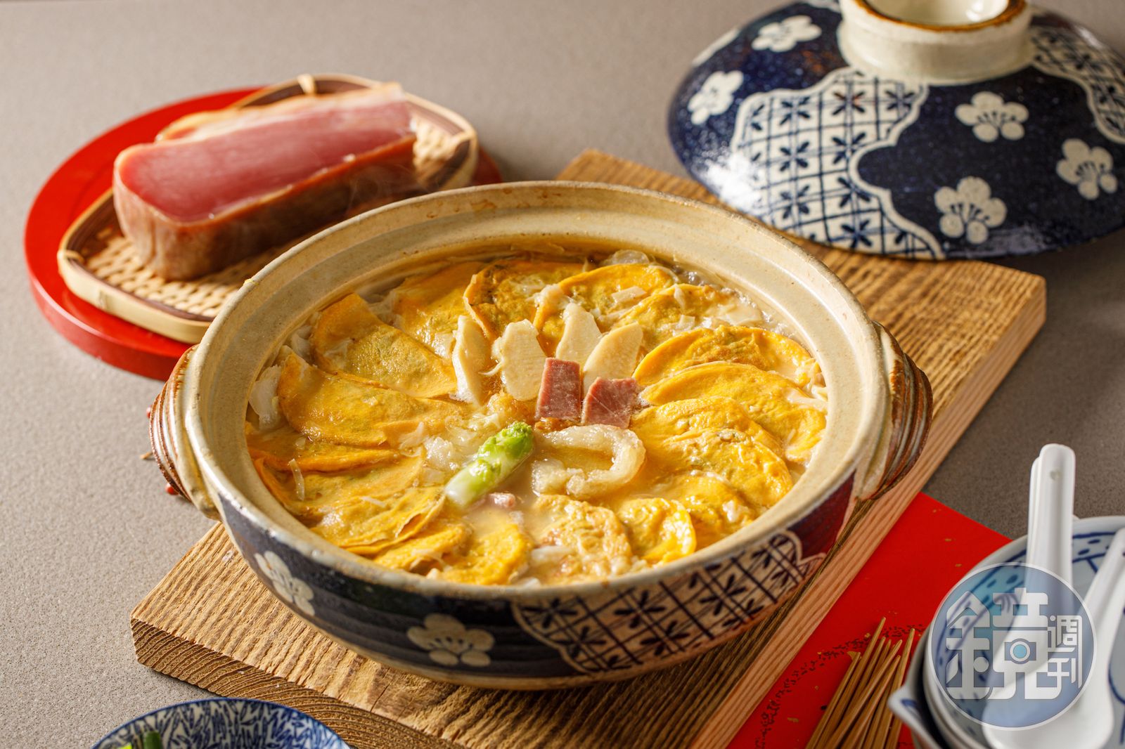 蛋餃百搭,選擇自己喜歡的鍋底,如加入金華火腿、冬筍、白菜與蹄筋的上海式湯頭鮮醇甘美,筍的清香配上蛋餃的蛋香,暖和的年味就更濃了。