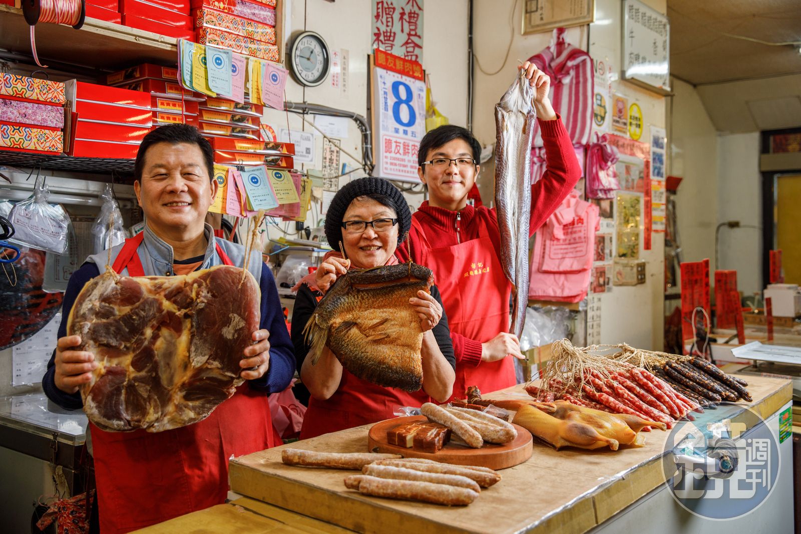這間屹立70年的老舖,一進門就是撲鼻臘香,「火腿如果放不夠陳,香氣就不足。」蔡珠兒自香港搬回台灣後,南門市場試過一輪,都找不到理想的,後來是好友、「涼州游嚴行 D-Place」主廚游育甄(Dana)推薦,才找上「彭記湖南臘肉」。