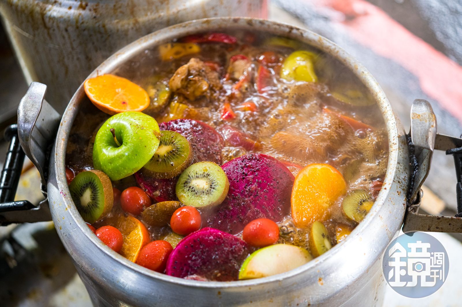 據說廖老闆之前做過無數嘗試,連櫻桃、哈密瓜這種高價貨都丟進滷鍋,看似百無禁忌,其實還是有把尺:「柑橘類的籽要挑掉,會苦;檸檬不行,會太酸;楊桃也不行,因為有些客人腎不好,不能吃。」不過有些蔬果的苦、澀、香,反而能賦予深度,讓人更吃不膩了。