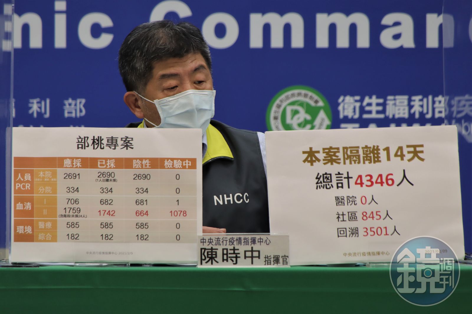 指揮中心在1月27日針對北北桃地區醫院發布探病禁令,持續至今,除例外情況疑慮停止開放探病,住院病人之陪病者僅限1人。但隨著部桃群聚案件宣布危機解除,前進指揮所陸續解編、部桃人員健保卡也取消註記,探病禁令宣布解除,明起回歸現行陪探病機制。