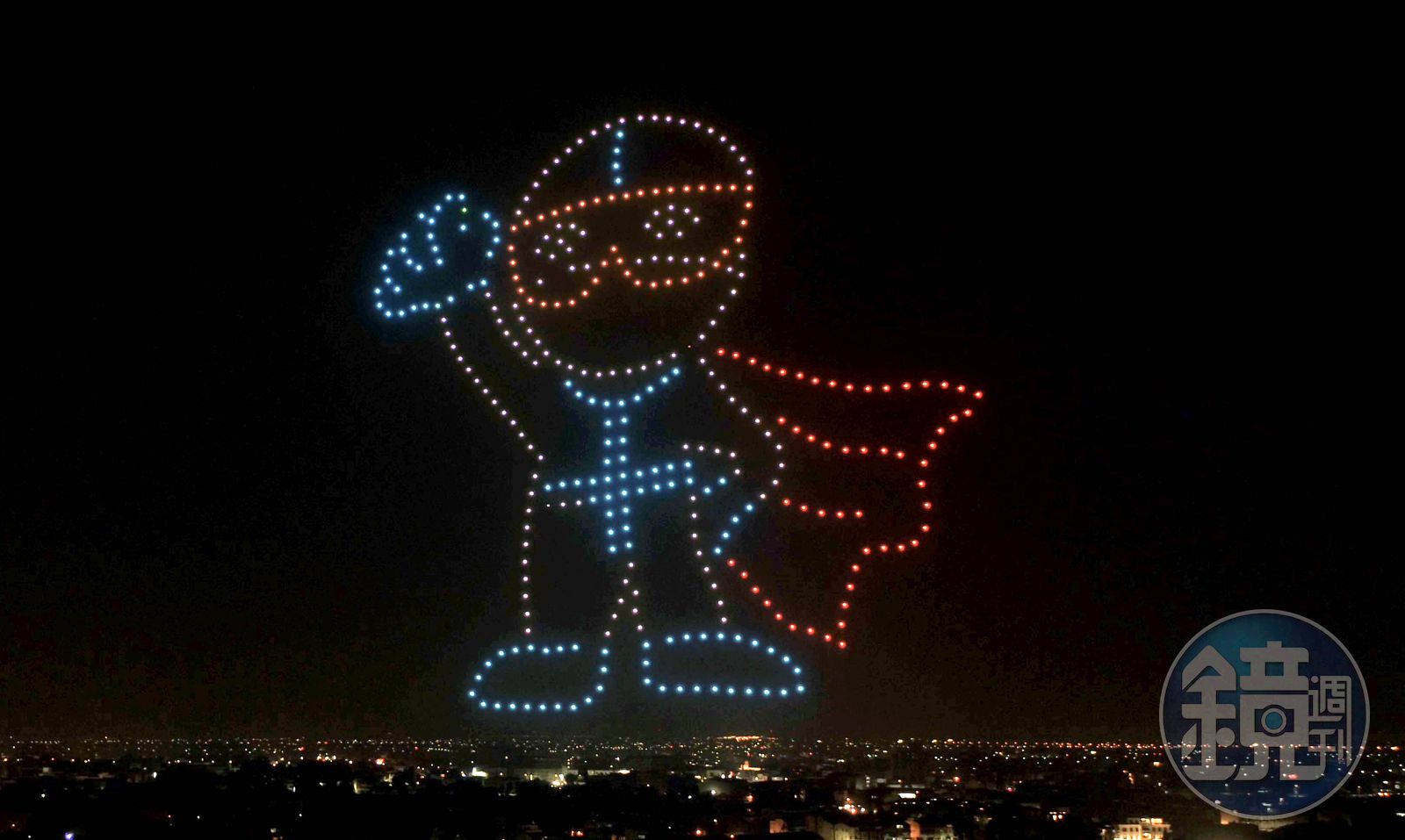 更在壓軸登場點亮首創「無人機祈福天燈」,天燈上還有 「 TAIWAN加油 」字樣,超大尺寸的天燈,象徵來自所有人祈禱與祝福聚集的能量,期望能為大家帶來一點心靈慰藉,利用展演科技的圖像,對世界各地的一線醫護人員、抗疫工作人員支持與鼓舞,辛苦的抗疫之路大家一起加油。