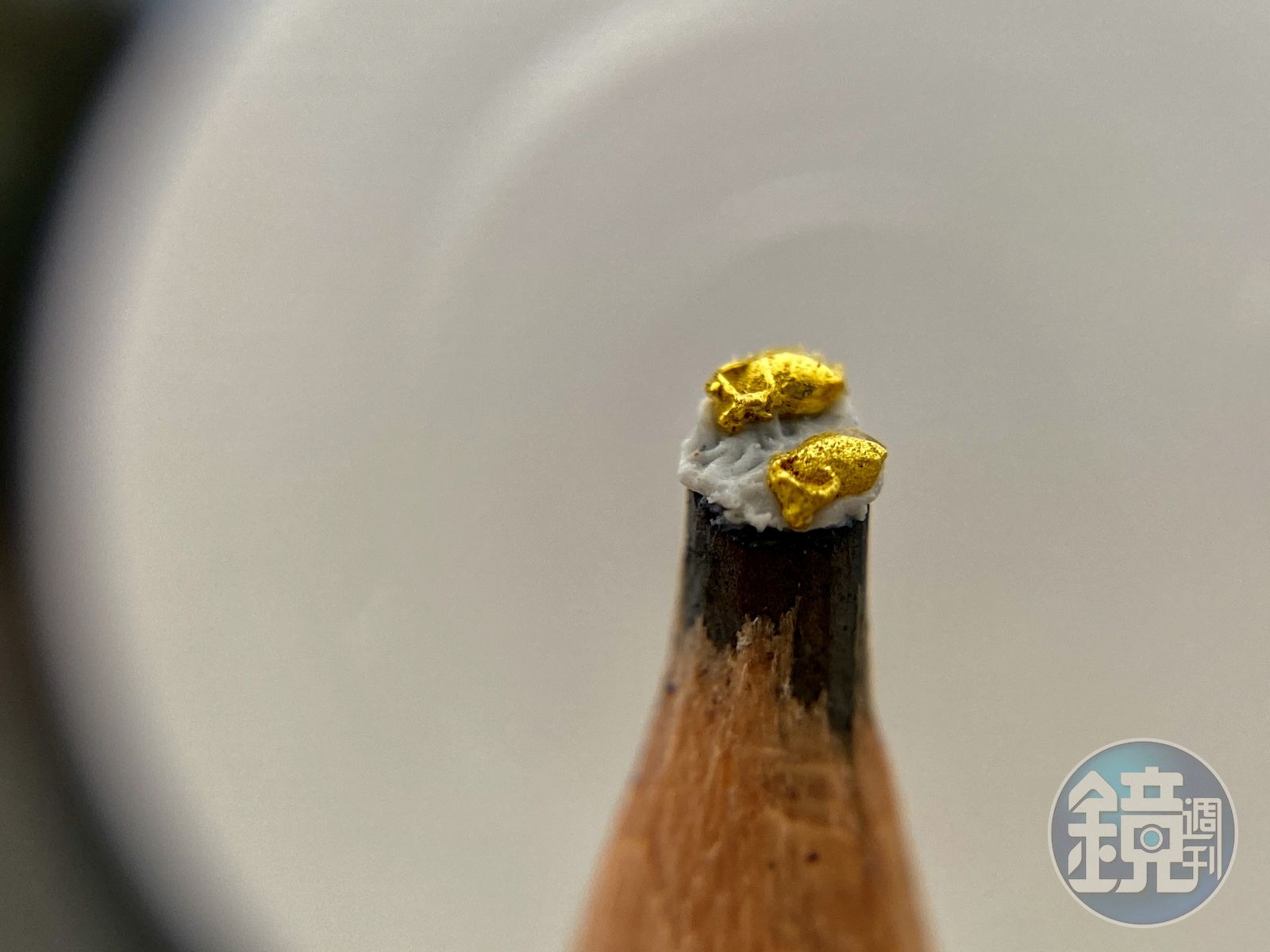 陳逢顯說,今年雕刻牛年作品主題是《刻苦耐勞》,形容台灣人民工作勤勉、吃苦耐勞、忍辱負重的性格,成功挑戰各種困境,他把台灣水牛雕刻成一毫米的尺寸,分別放在鉛筆尖上、米粒上、針孔上,是世界首創最小黃金雕刻牛的作品。