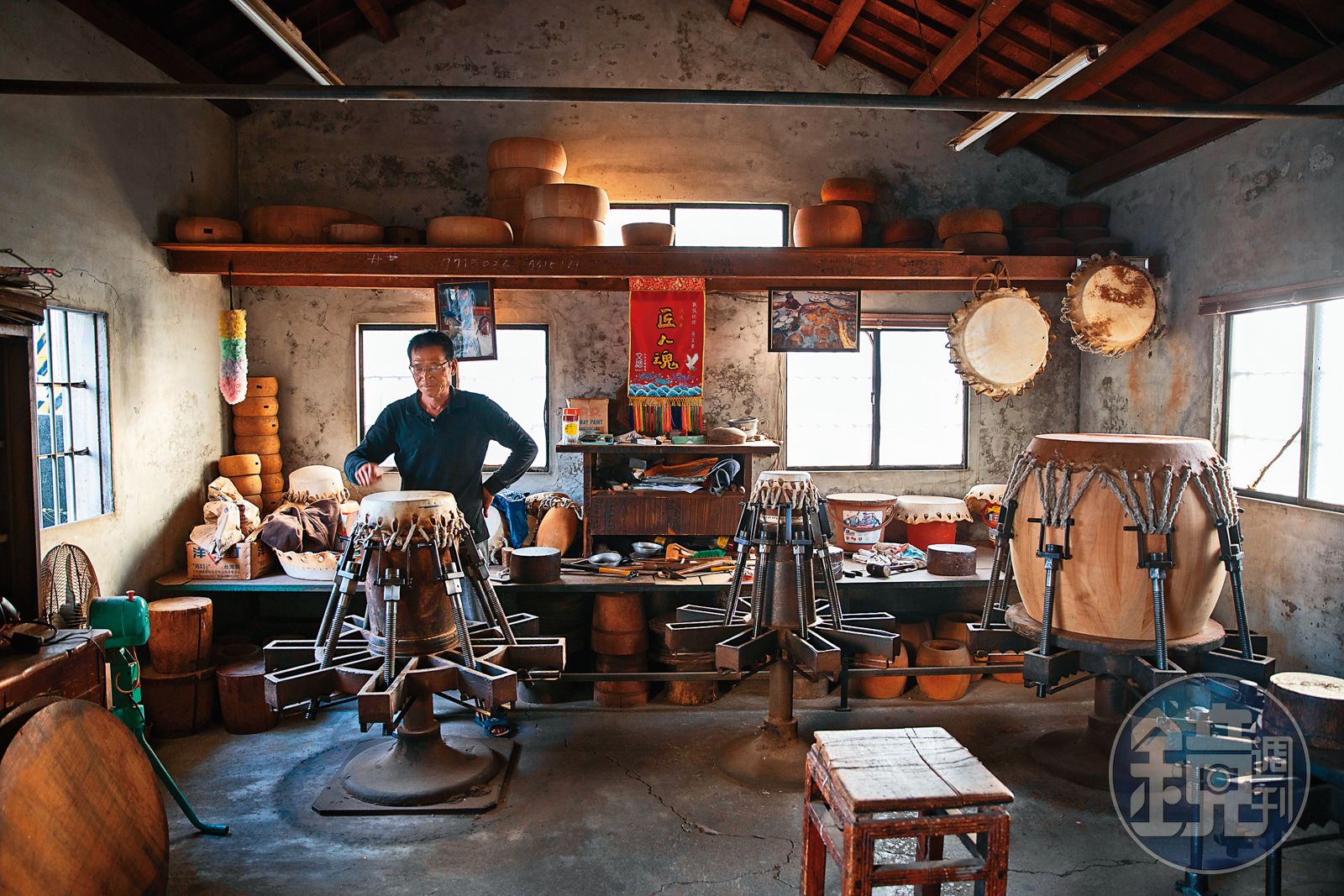 這是傳承70多年的傳統工藝,黃呈豐的父親、叔叔向福州來的製鼓師傅拜師學藝。他憶起幼時,全家大小一起為製鼓而忙碌,甚至因小兒麻痺症而行動不便的哥哥也在幫忙。雖然從小就懂製鼓基本知識,但黃呈豐真正接下家業,是直到父親生病倒下的那年。