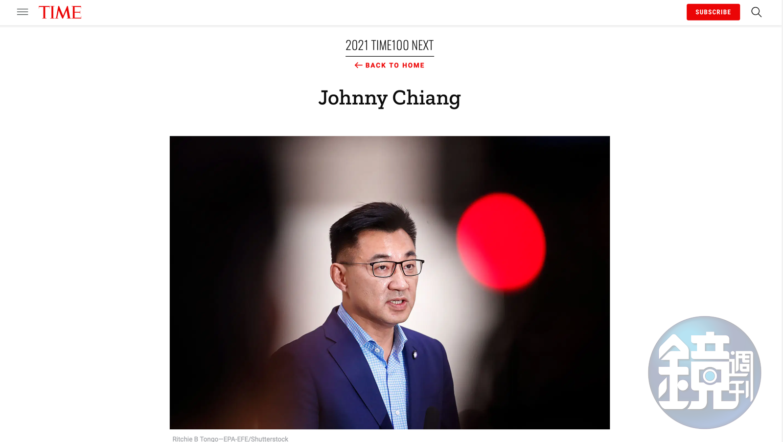 國民黨主席江啟臣獲選《時代雜誌》的百大次世代領導人。(翻攝自《時代雜誌》官網)發布時間:2021.02.18 08:26 臺北時間