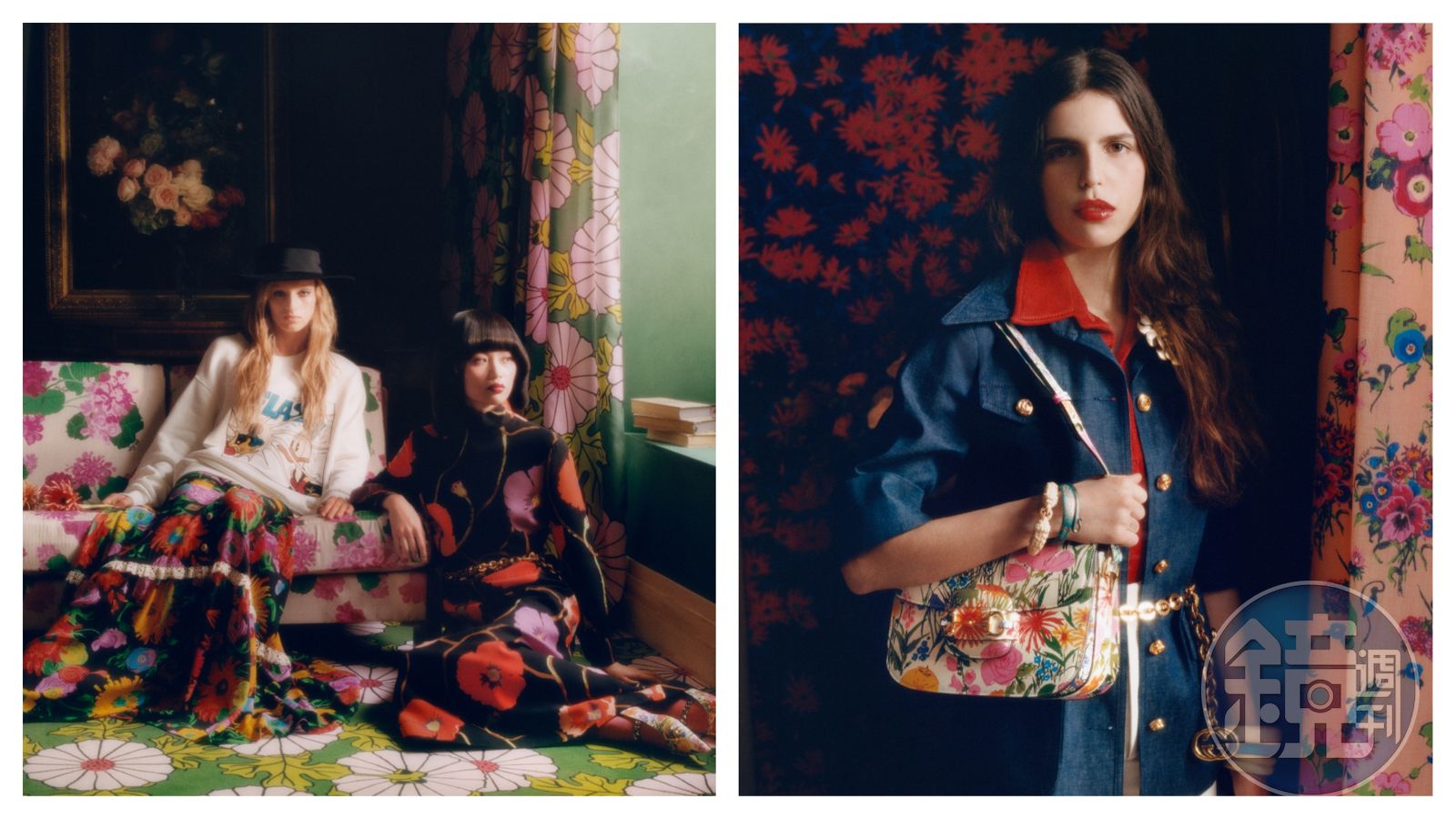 Ken Scoot Jackie 1961 系列彩色肩背包 NT$81,600。(GUCCI提供) Ken Scoot 系列花朵連帽衛衣 NT$42,000。(GUCCI提供) 由Gucci創意總監Alessandro Michele構思並由攝影師Mark Peckmezian拍攝的形象廣告於2月18日發表,廣告在裝飾有不同圖案和花卉佈置的房間中拍攝,凸顯了這系列作品。取材於系列作品的Ken Scott圖案,幻化成壁紙,窗簾,桌布和靠墊,在濃烈的色彩和鮮明的印花世界中創造了與眾不同的氛圍。