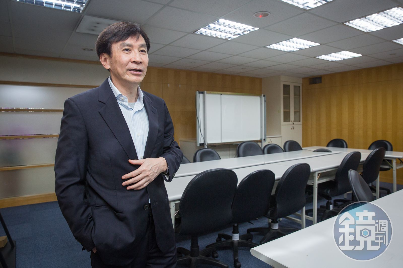 原來,這裡就是剛上任1個多月的新總經理鍾依文辦公室,穿著西裝的他,看到本刊問起辦公室怎麼會長這樣?只見他直率地說:「我在鴻海的那一套(戰情室)不錯,所以把它移植過來,這樣各部門就能一起開會,所有高階主管可以馬上得知第一手訊息,有問題也能立即跨部門溝通。」不止如此,總經理室還設有另一扇門,一打開就直通董事長辦公室,「這樣也方便跟盧董(大同董事長盧明光)溝通,比較有效率!」鍾依文笑著說。
