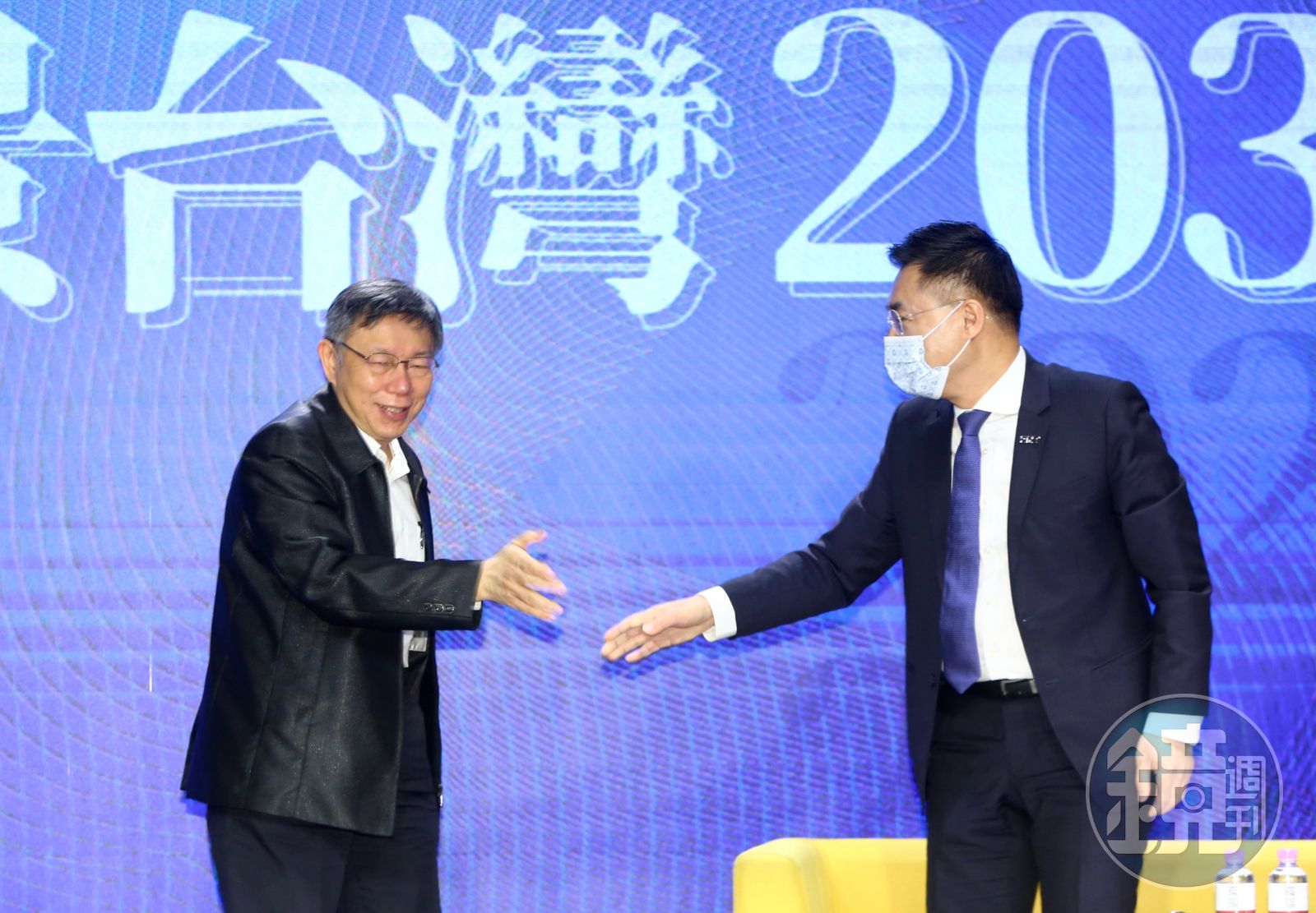據《聯合報》報導,國民黨青年部主任陳冠安指出,江啟臣與柯文哲同台出席論壇新聞在21日曝光當天,依大數據調查顯示,國民黨網路聲量衝高幾乎與民進黨呈現黃金交叉,不過台灣民眾黨卻未提升。