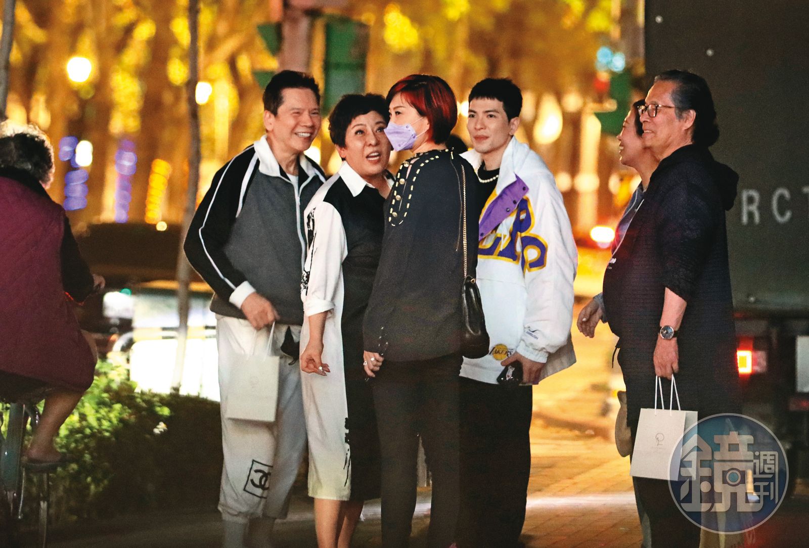 23日晚間11點,本刊又在台北晶華酒店直擊向華強夫妻、蕭敬騰、Summer及幾位友人從米其林一星餐廳「Impromptu by Paul Lee」用完餐離開,眾人在門口聊天,向華強看似是香奈兒愛用者,全身從頭到腳穿著香奈兒休閒套裝,腰上還掛香奈兒腰包,向太也揹著小香包,而Summer一路和向華強有說有笑、互擁道別。