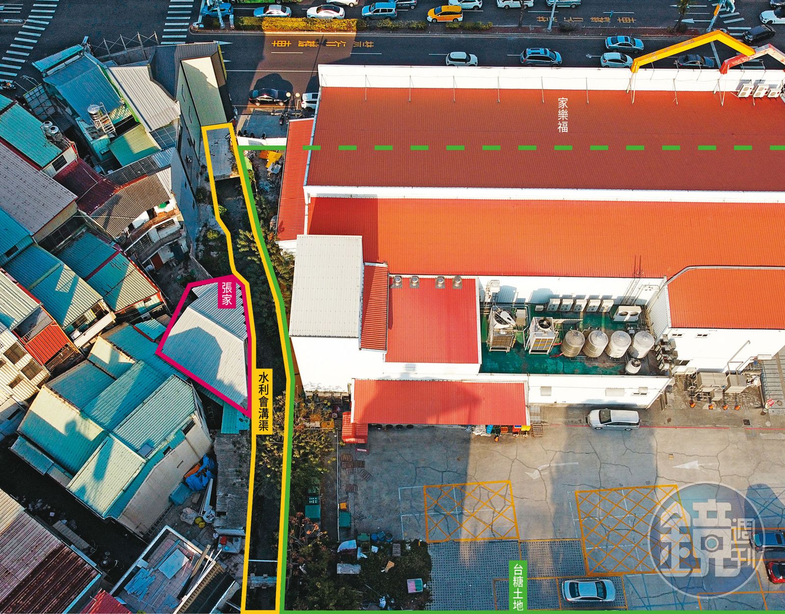 而張家旁邊大片土地是台糖所有,分隔界線是水利會的灌溉溝渠。1977年省府重新丈量,竟然將台糖土地多測出300多平方公尺;而重測的結果,變成他們家侵佔台糖與水利會的土地。
