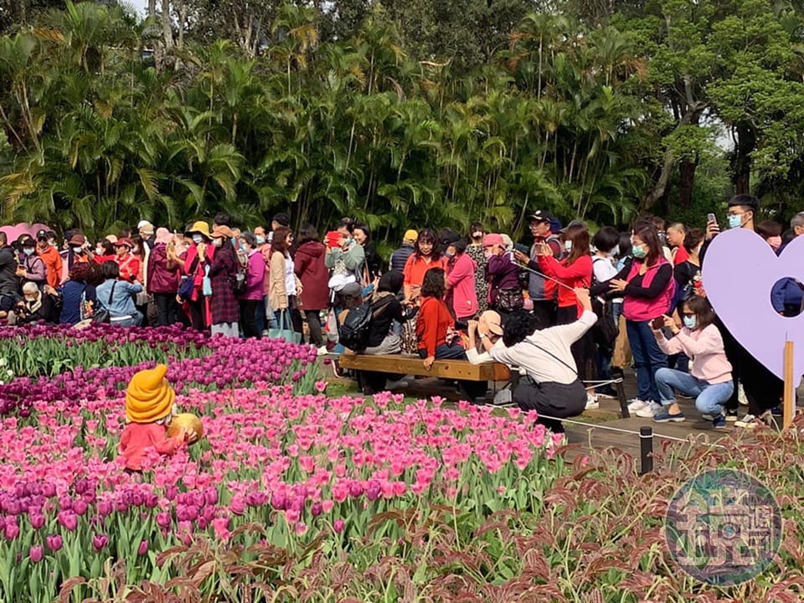 正值花季期間的陽明公園也為人潮較多的黃色燈號。(翻攝自公園新花漾臉書)北市工務局指出,台版富良野花海展期於1月26日至3月31日,陽明山花季展期為2月5是至3月21日,鬱金香展2月25日至3月7日,人潮爆多時,展期內都可擇期再來觀賞,避免群聚風險。