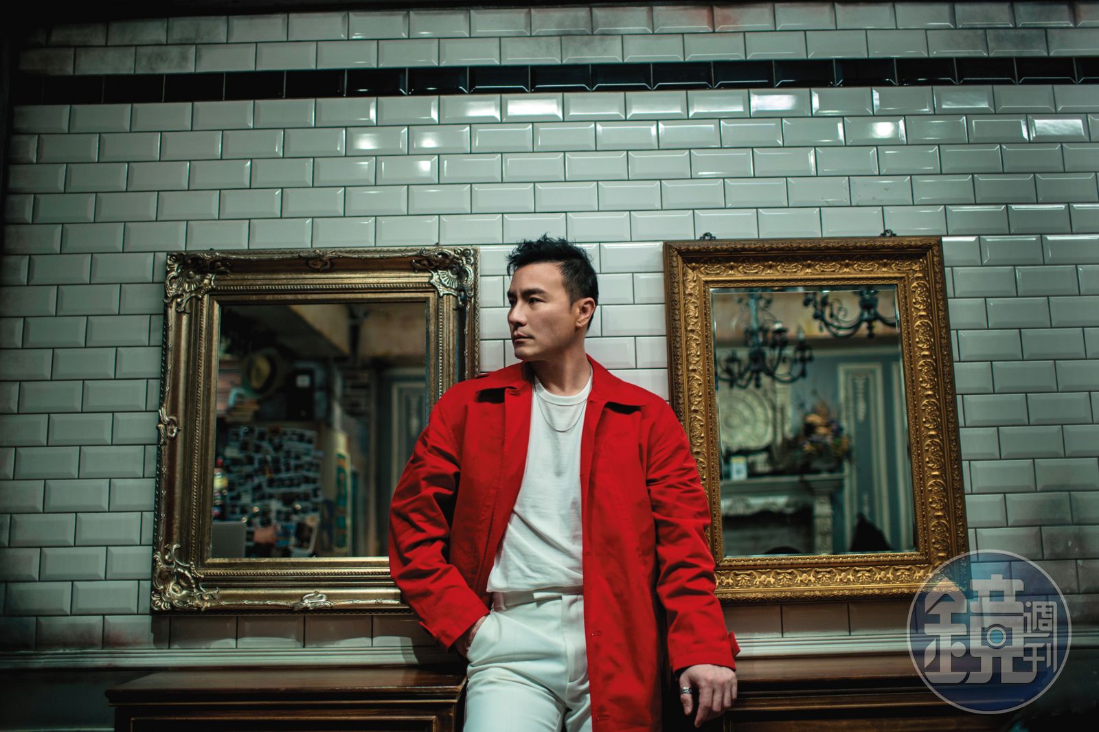 服裝提供:Vivienne Westood(叢林印花綠色西裝)、LACOSTE(白色羊毛修身長褲)、BOTTEGA VENETA(豔唇紅厚棉附腰帶風衣)
