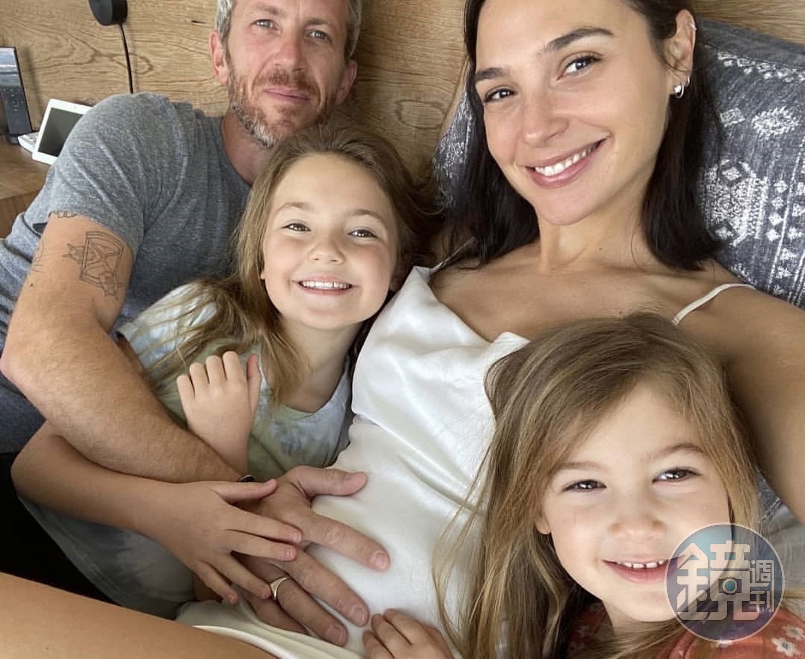 蓋兒加朵與大她10歲、出生於荷蘭阿姆斯特丹的同鄉老公亞隆凡薩諾2006年在以色列的沙漠相遇,一見鍾情的兩人很快地在2008年就結婚,之後分別在2011年及2017年迎來2個可愛的女兒Alma及Maya,一家四口過得幸福無比。去年上映的《神力女超人1984》,蓋兒加朵外還在片末把老公和2個孩子都拉來客串當臨演,成了名副其實的「彩蛋」。
