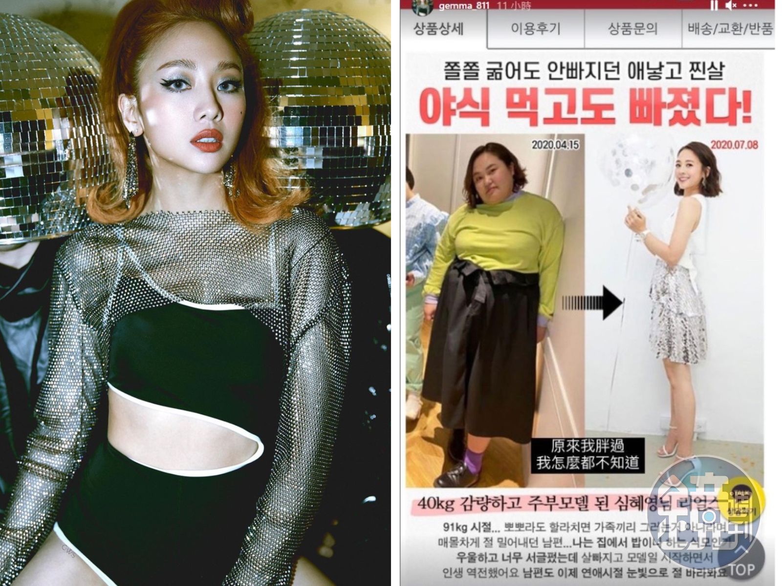 「鬼鬼」吳映潔的照片遭韓國網站盜用推銷減肥產品。(翻攝自吳映潔IG)發布時間:2021.03.02 13:30 臺北時間