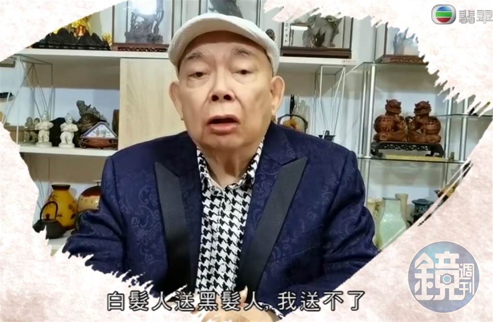 黃一飛在影片中悼念吳孟達,老態引起網民關心。(翻攝自TVB微博)發布時間:2021.03.03 08:27 臺北時間