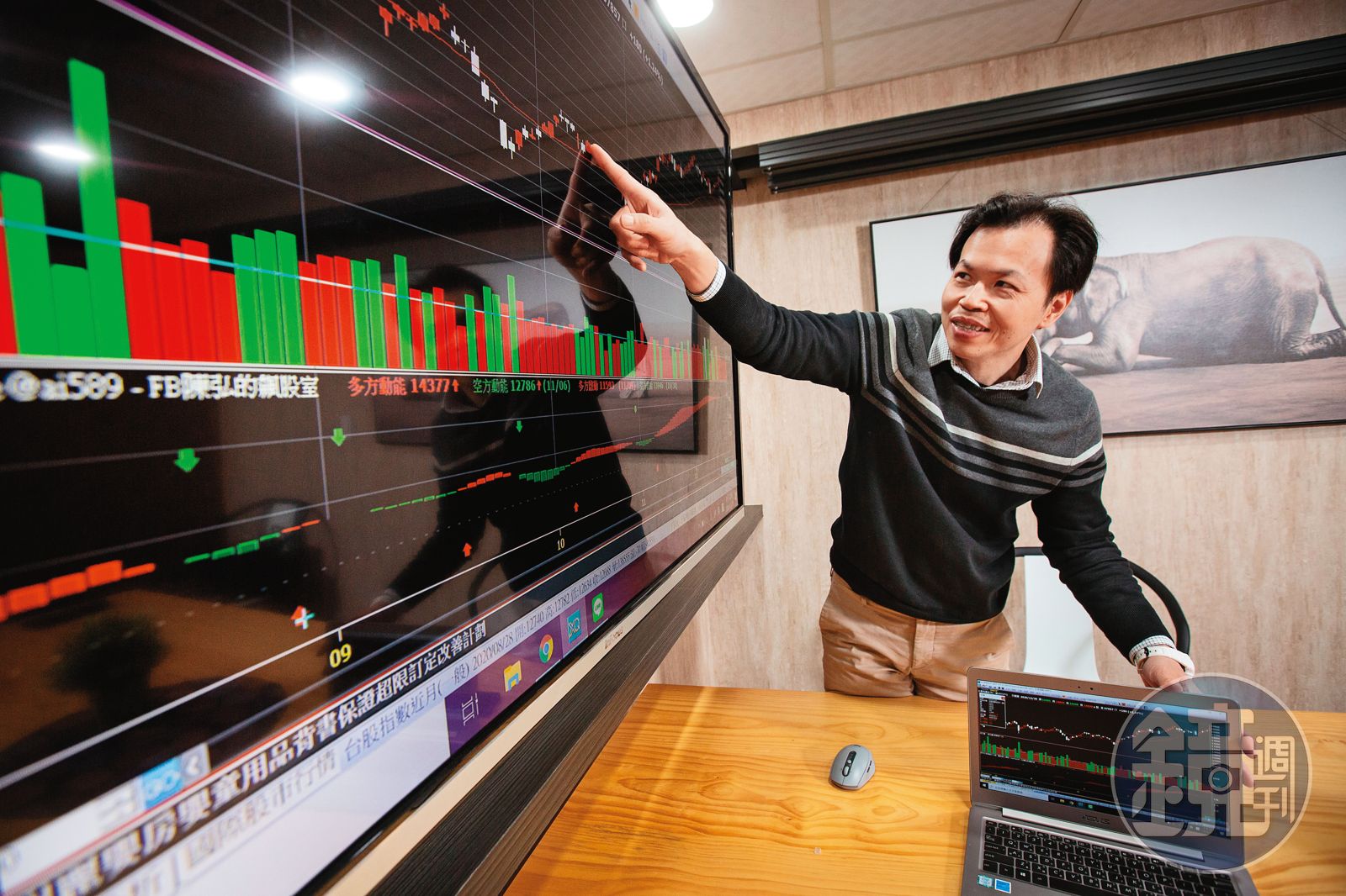 「其實我以前是看基本面操作,但總是小賺小賠,就連存股1年也才賺5%,沒想到便當外食一下從505元漲到60元,一漲就2成,這樣的成績根本追不上物價上漲。」最初手上資金僅30萬元的陳弘不斷反省,32歲時破釜沉舟辭了工作,專心研究技術分析,如今靠投資累積出3千萬元身價。